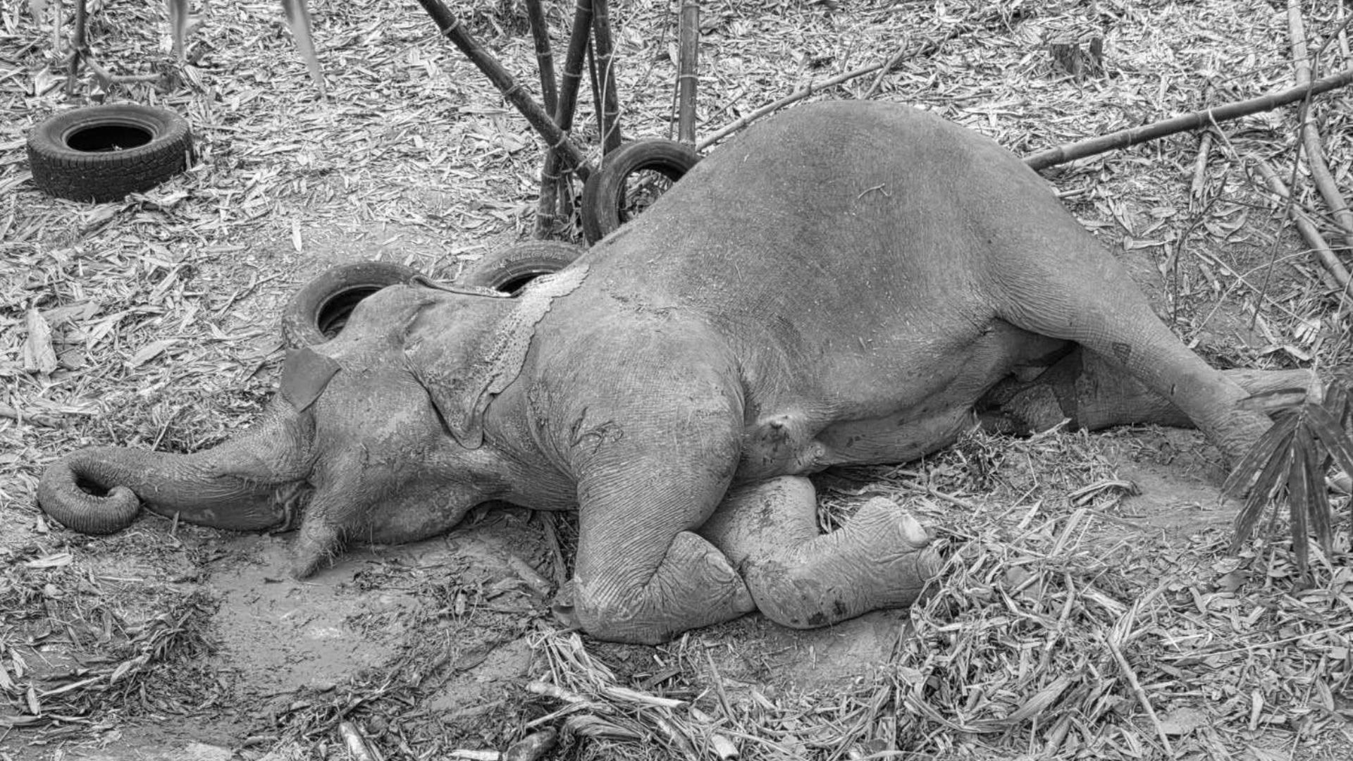 จนกระทั่งเวลา 16.50 น. สัญญาณอันตรายปรากฏชัด เมื่อช้างขับถ่ายปัสสาวะเป็นสีน้ำตาลเข้มผิดปกติ ก่อนจะเข้าสู่ภาวะช็อก ทีมสัตวแพทย์เข้ากู้ชีพทันทีและให้ยาฉุกเฉินเพื่อดึงสัญญาณชีพกลับมา แต่แม่ช้างไม่ตอบสนองต่อการรักษาและจากไปในที่สุดในอีกไม่กี่นาทีต่อมา