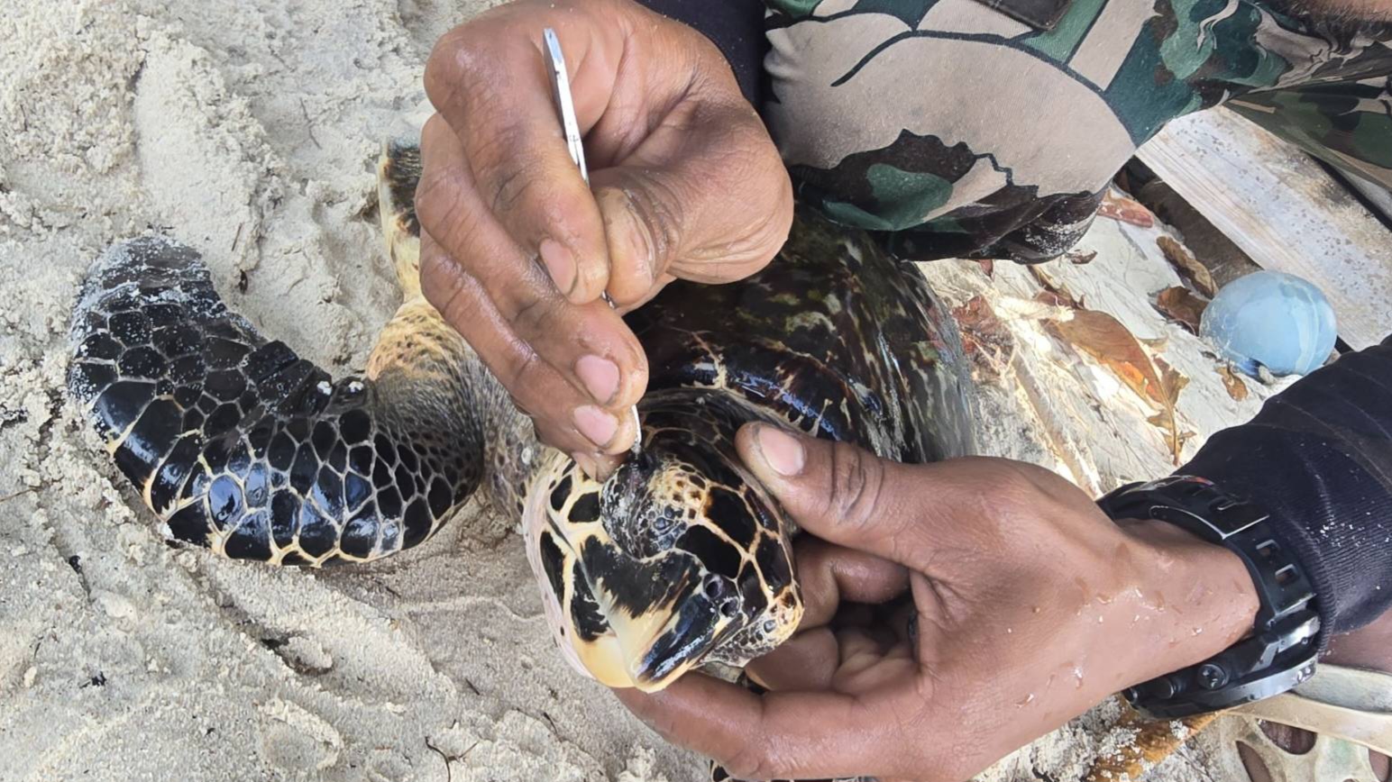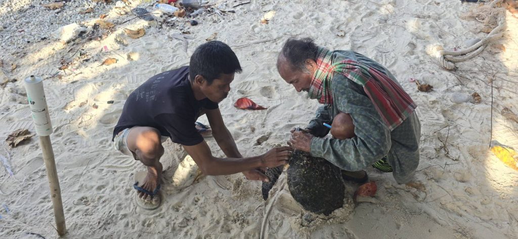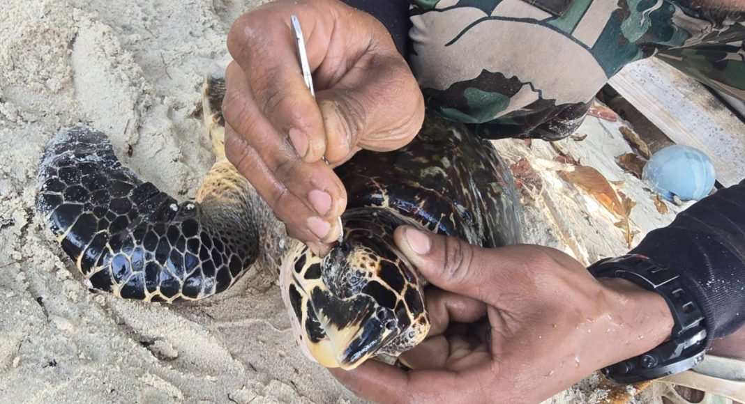 จากการตรวจสอบเบื้องต้น พบว่าเป็นเต่ากระ ขนาดลำตัวยาว 36 เซนติเมตร กว้าง 23 เซนติเมตร น้ำหนักประมาณ 12 กิโลกรัม สุขภาพแข็งแรงดี เจ้าหน้าที่จึงได้ดำเนินการตัดอวนและช่วยเหลือด้วยความระมัดระวัง เพื่อไม่ให้เกิดบาดแผลแก่สัตว์ทะเล ก่อนจะนำไปปล่อยคืนสู่ธรรมชาติในพื้นที่ที่ปลอดภัย