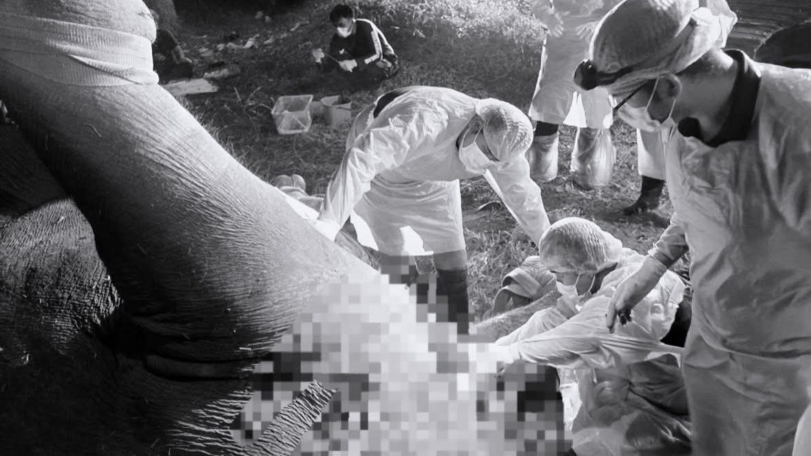 ทีมสัตวแพทย์ผ่าชันสูตร “แม่ช้างป่าเขาฉกรรจ์” ล้มสงบ ก่อนเก็บตัวอย่างอวัยวะภายในส่งตรวจหาสาเหตุอย่างละเอียด