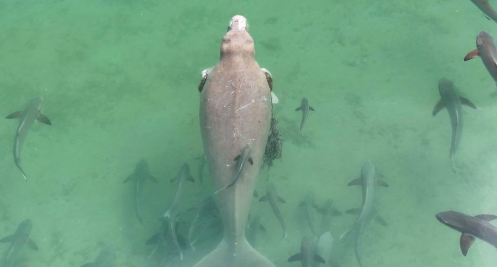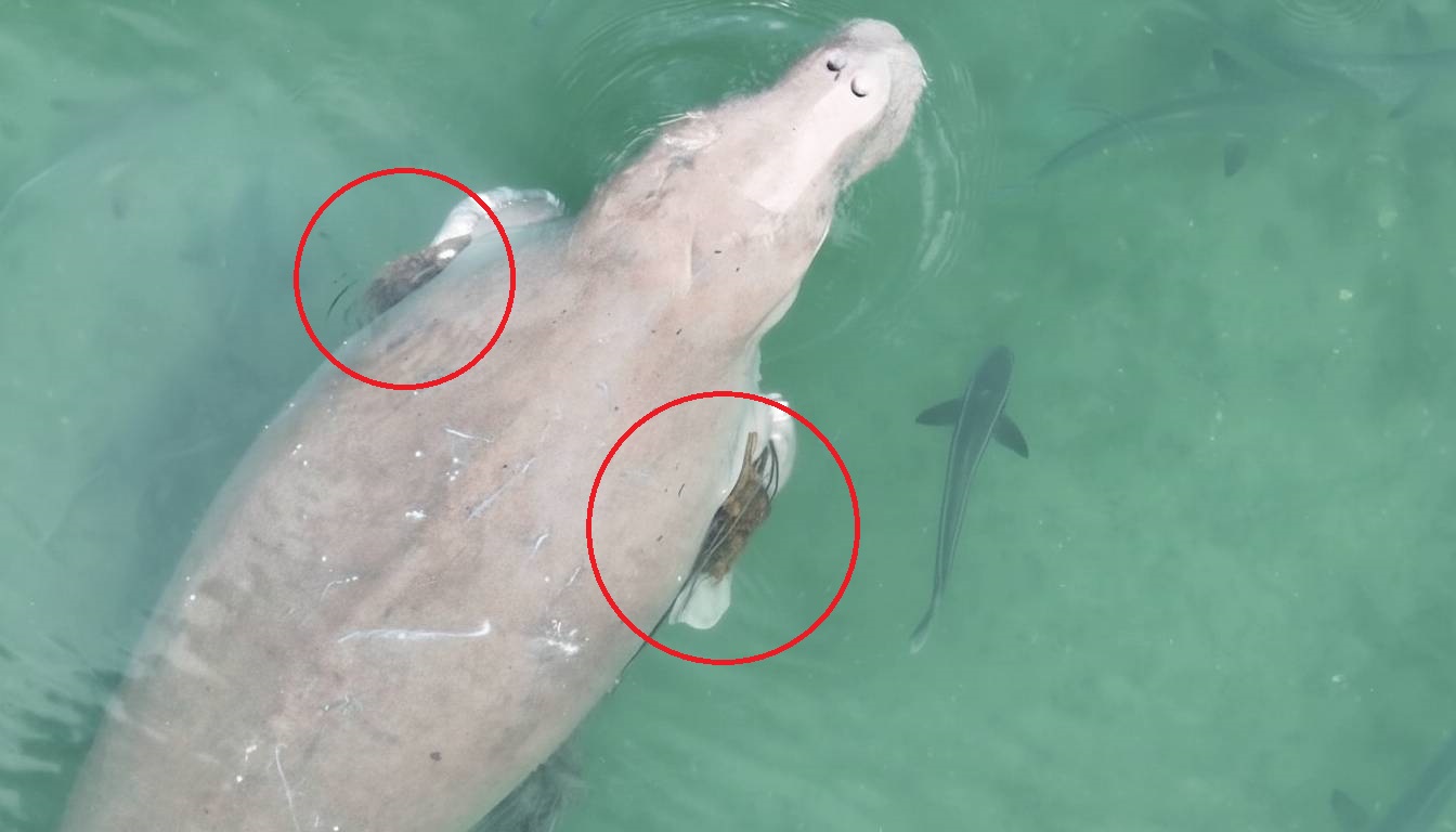 ศูนย์ศึกษาและวิจัยอุทยานแห่งชาติทางทะเลที่ 3 (จังหวัดตรัง) ใช้โดรนสำรวจพะยูนเกาะลิบง พบ 4 ตัวสุขภาพดี แต่ยังน่าห่วง! พบ 1 ตัวมีเชือกพันครีบ เจ้าหน้าที่เร่งติดตามใกล้ชิด