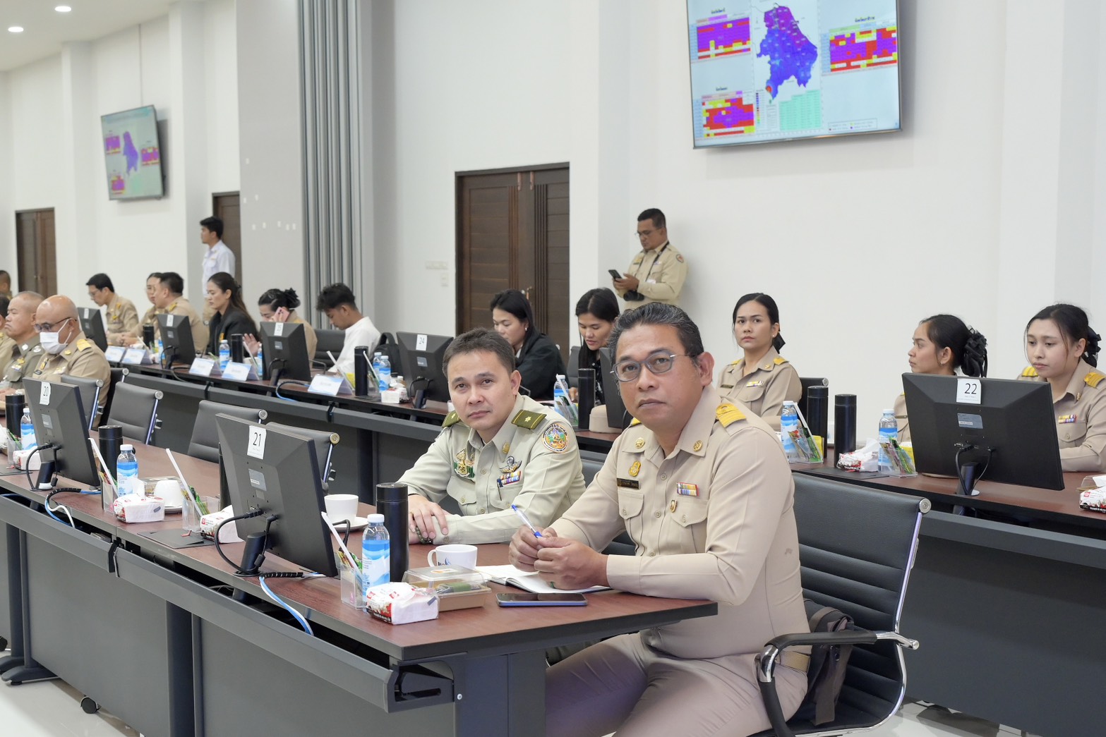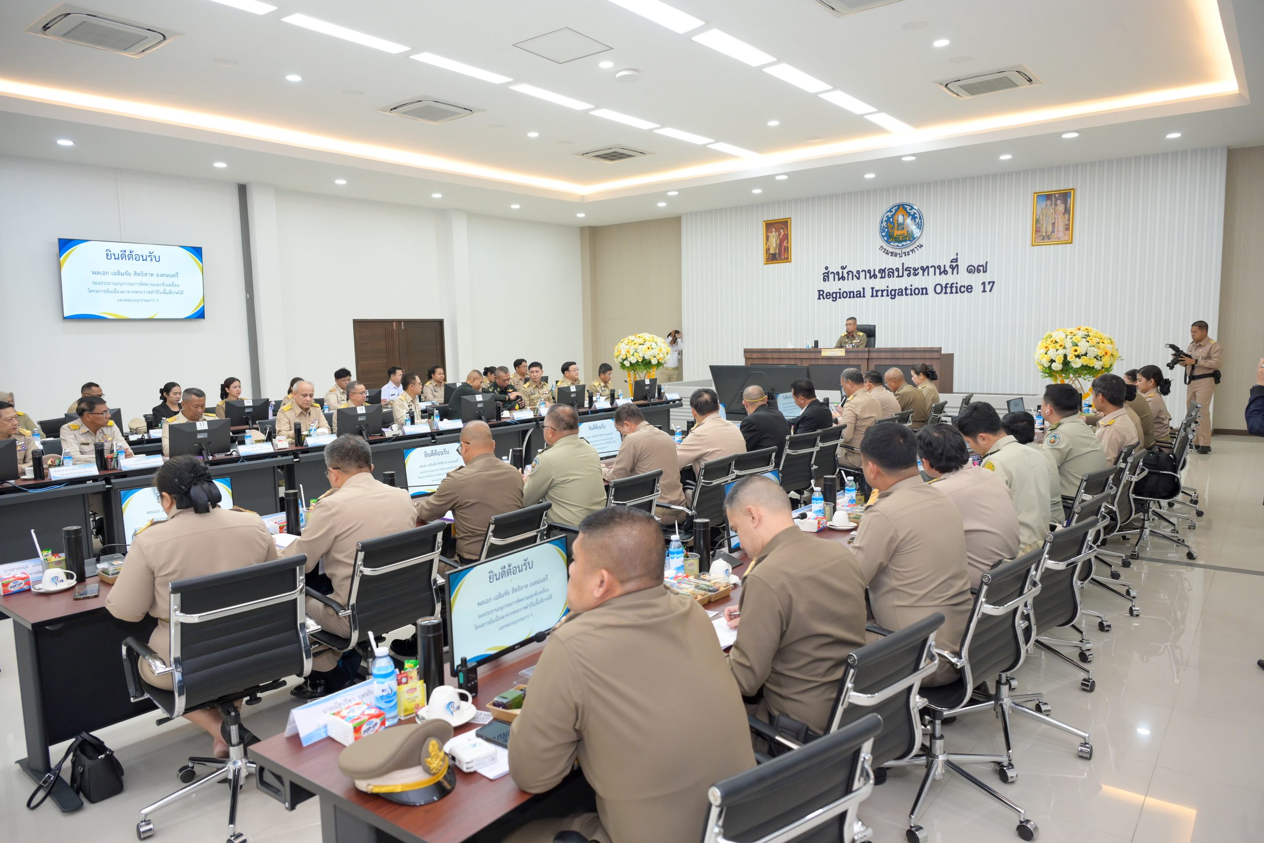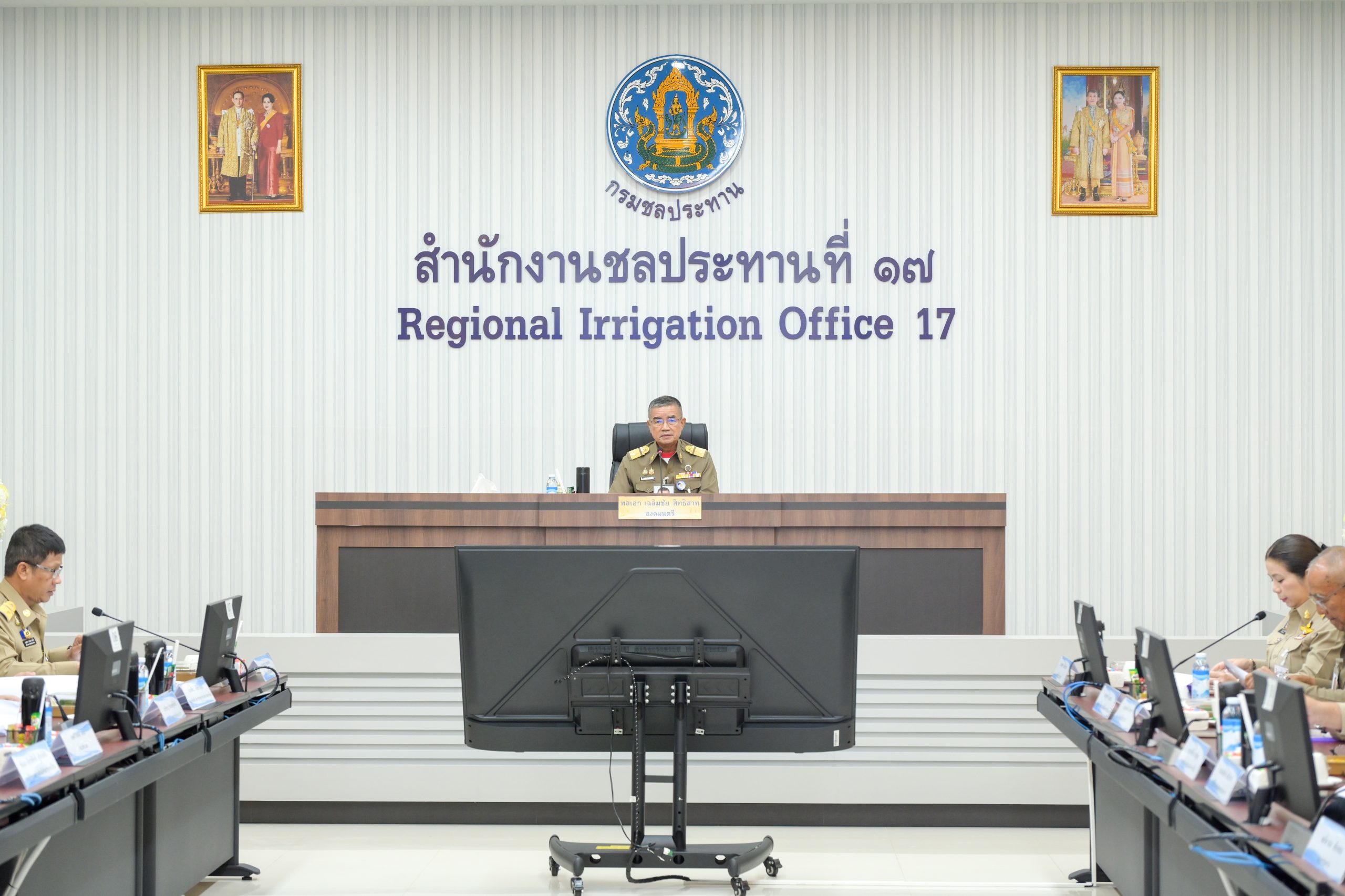 ในช่วงเช้า ณ สำนักงานชลประทานที่ 17 จ.นราธิวาส คณะฯ ได้รับฟังรายงานสรุปสถานการณ์ความเสียหายจากอุทกภัยในพื้นที่ 3 จังหวัดชายแดนภาคใต้ ซึ่งส่งผลกระทบต่อโครงการอันเนื่องมาจากพระราชดำริรวม 42 โครงการ โดยกรมชลประทานได้เร่งดำเนินแผนซ่อมแซมอาคารและระบบส่งน้ำเพื่อให้เกษตรกรสามารถกลับมาเพาะปลูกได้เต็มศักยภาพโดยเร็วที่สุด