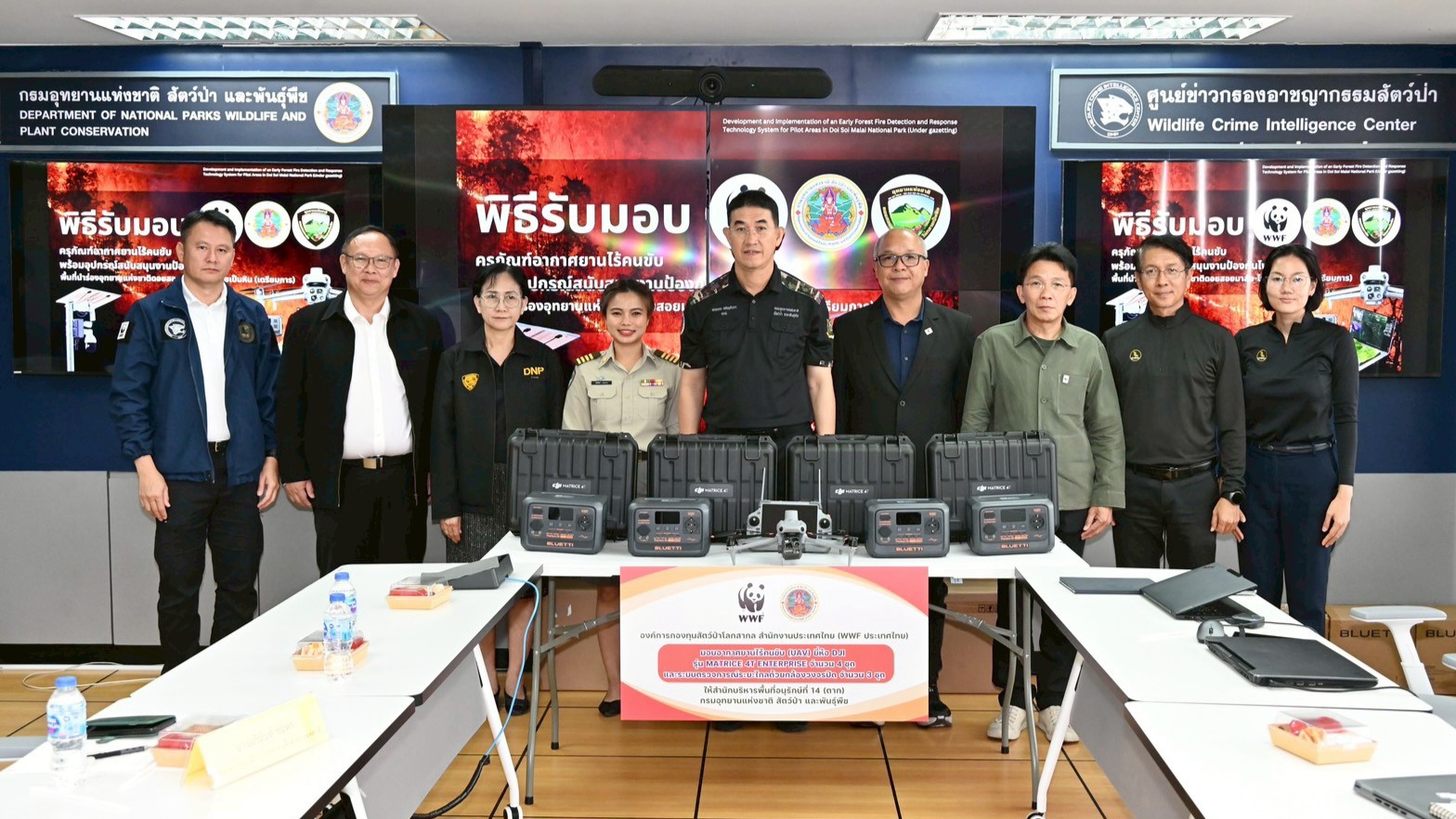 นายรัฐพล พิทักษ์เทพสมบัติ รักษาการผู้อำนวยการฝ่ายอนุรักษ์ WWF กล่าวว่า ด้วย WWF ประเทศไทยได้ดำเนินโครงการเสริมสร้างความร่วมมืออนุรักษ์ความหลากหลายทางชีวภาพและฟื้นฟูภูมิทัศน์ป่าไม้แนวเชื่อมต่อระบบนิเวศเทือกเขาถนนธงชัย-ตระนาวศรี จังหวัดตาก ควบคู่กับการจัดการปัญหาไฟป่าอย่างมีส่วนร่วมแบบเป็นรูปธรรม โดยมีอุทยานแห่งชาติดอยสอยมาลัย-ไม้กลายเป็นหิน (เตรียมการ) เป็นพื้นที่ดำเนินการหลัก ซึ่งเผชิญสถานการณ์ไฟป่าอย่างต่อเนื่องในช่วงฤดูแล้ง ส่งผลกระทบต่อระบบนิเวศ ความหลากหลายทางชีวภาพ คุณภาพอากาศ ตลอดจนความปลอดภัยของเจ้าหน้าที่และชุมชนโดยรอบ จึงมีความจำเป็นที่ต้องเพิ่มศักยภาพในการเฝ้าระวังและตอบสนองการป้องกันไฟป่าเพื่อให้ทันท่วงที ด้วยเหตุนี้จึงได้มอบ 1.อากาศยานไร้คนขับ (UAV) ยี่ห้อ DJI รุ่น MATRICE 4T Enterprise จำนวน 4 ชุด 2.ระบบตรวจการณ์ระยะไกลด้วยกล้องวงจรปิด จำนวน 3 ชุด ติดตั้งในพื้นที่เสี่ยงต่อการเกิดไฟป่า