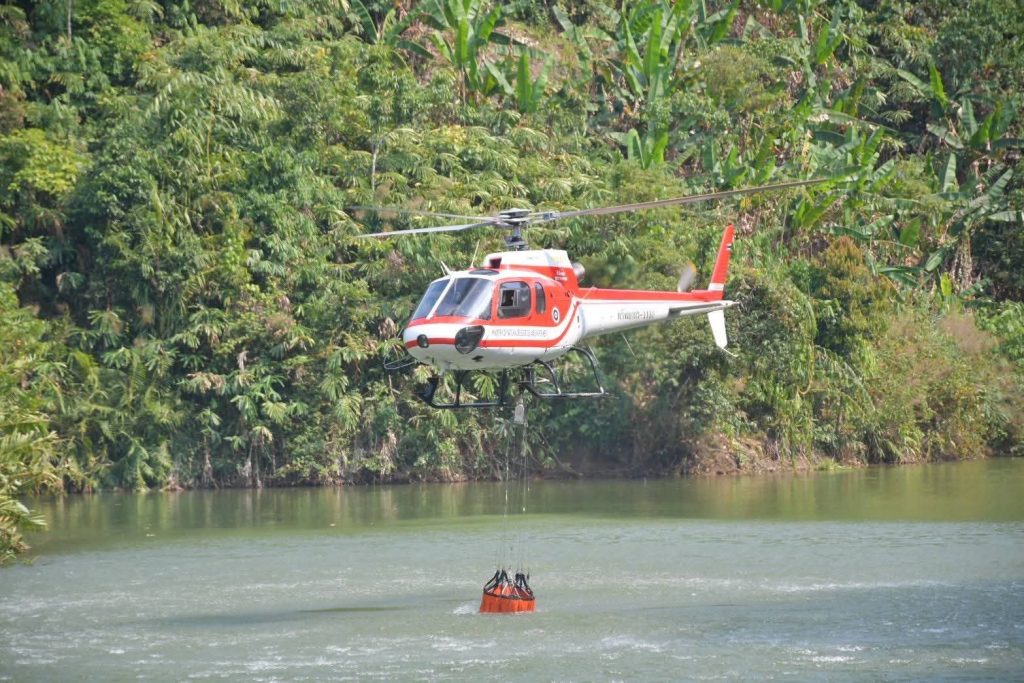 ต่อมาเฮลิคอปเตอร์หมายเลข ทส. 1110 ได้เข้าปฏิบัติภารกิจทิ้งน้ำรวมทั้งสิ้น 38 เที่ยวบิน (รวมปริมาณน้ำกว่า 19,000 ลิตร) สามารถควบคุมไฟทางด้านทิศตะวันออกได้สำเร็จ ทั้งนี้ เนื่องจากบริเวณทิศตะวันตกมีต้นไม้กวาดสูงกว่า 5 เมตร ซึ่งเป็นเชื้อเพลิงอย่างดี ประกอบกับลมแรง ทำให้ไฟลุกลามเร็ว เจ้าหน้าที่ต้องเร่งทำแนวกันไฟบล็อกพื้นที่เพื่อป้องกันไม่ให้ไฟลามสู่ยอดเขาช้างเผือกทางทิศเหนือ