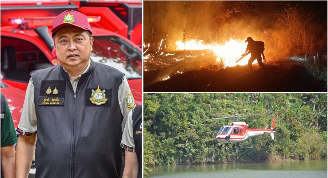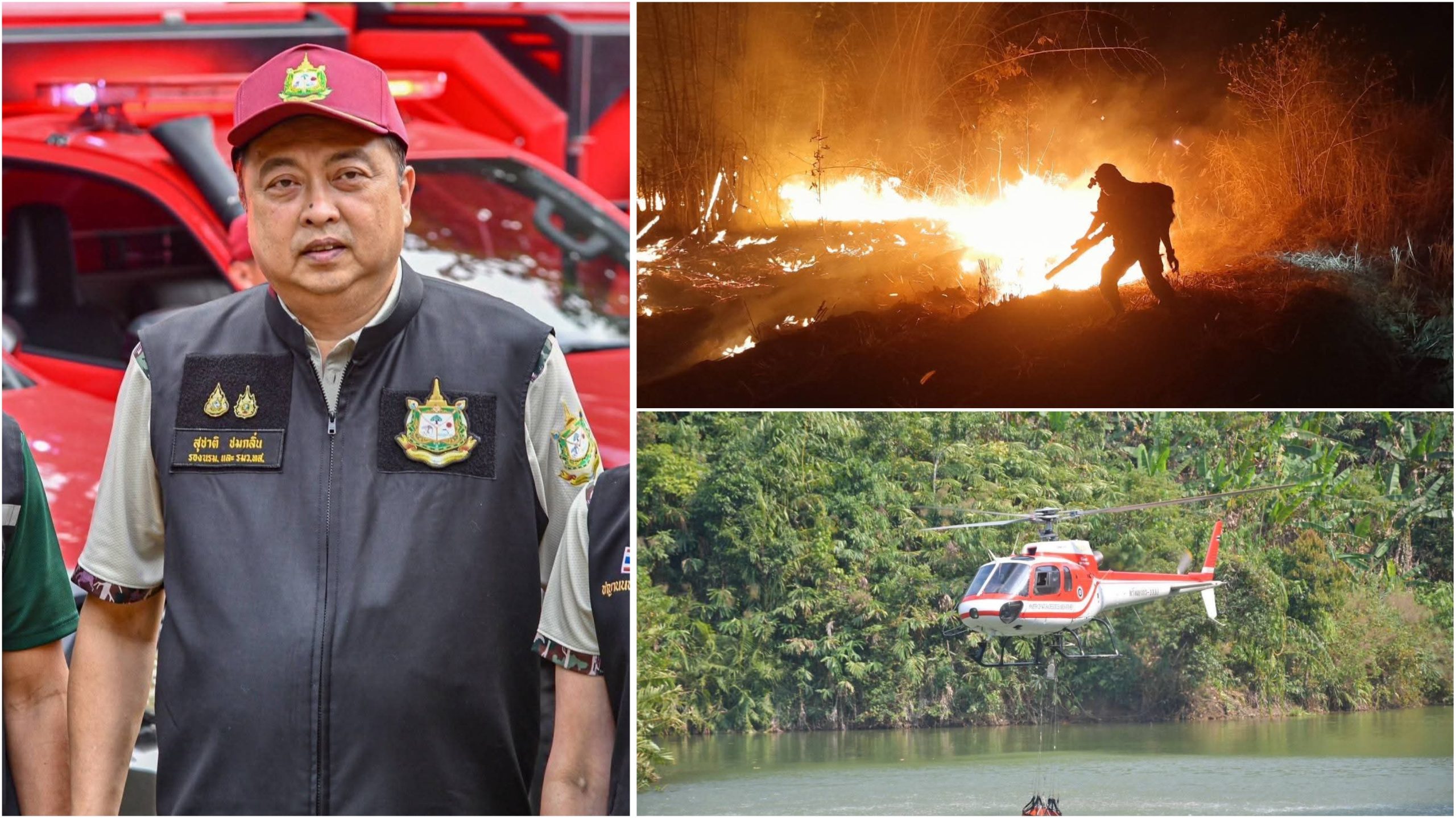 นายสุชาติ ชมกลิ่น รองนายกรัฐมนตรี ติดตามสถานการณ์ไฟป่าในพื้นที่จังหวัดกาญจนบุรีอย่างใกล้ชิด พร้อมสั่งการให้หน่วยงานในสังกัดกระทรวงทรัพยากรธรรมชาติและสิ่งแวดล้อม บูรณาการกำลังทั้งภาคพื้นและทางอากาศ เพื่อเร่งควบคุมสถานการณ์ไฟป่าหมอกควันในพื้นที่กลุ่มป่ารอบเขื่อนศรีนครินทร์ จังหวัดกาญจนบุรี