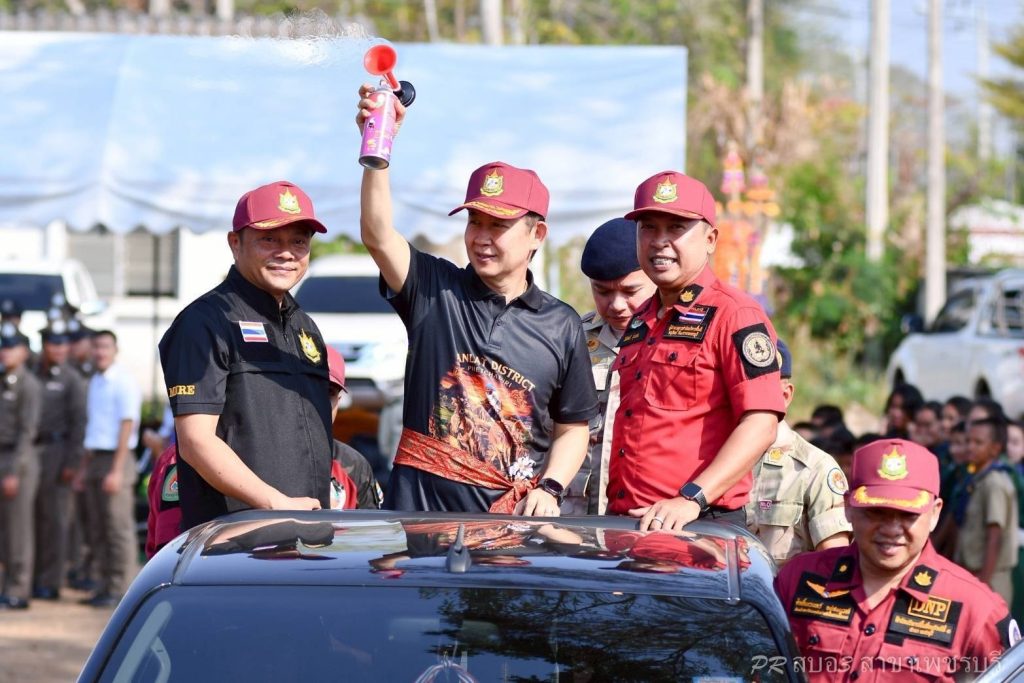 ภายหลังพิธีเปิด ได้มีการปล่อยแถวกำลังพลเจ้าหน้าที่เพื่อลงพื้นที่รณรงค์เชิงรุกแบบ “เคาะประตูบ้าน” ณ หมู่ที่ 5 บ้านสะแกงาม ต.ยางน้ำกลัดเหนือ อ.หนองหญ้าปล้อง เพื่อประชาสัมพันธ์ให้ความรู้และขอความร่วมมือจากพี่น้องประชาชนในการสอดส่องดูแลพื้นที่ ลดปัจจัยเสี่ยงที่ก่อให้เกิดไฟป่า ซึ่งส่งผลกระทบโดยตรงต่อสุขภาพและสิ่งแวดล้อม