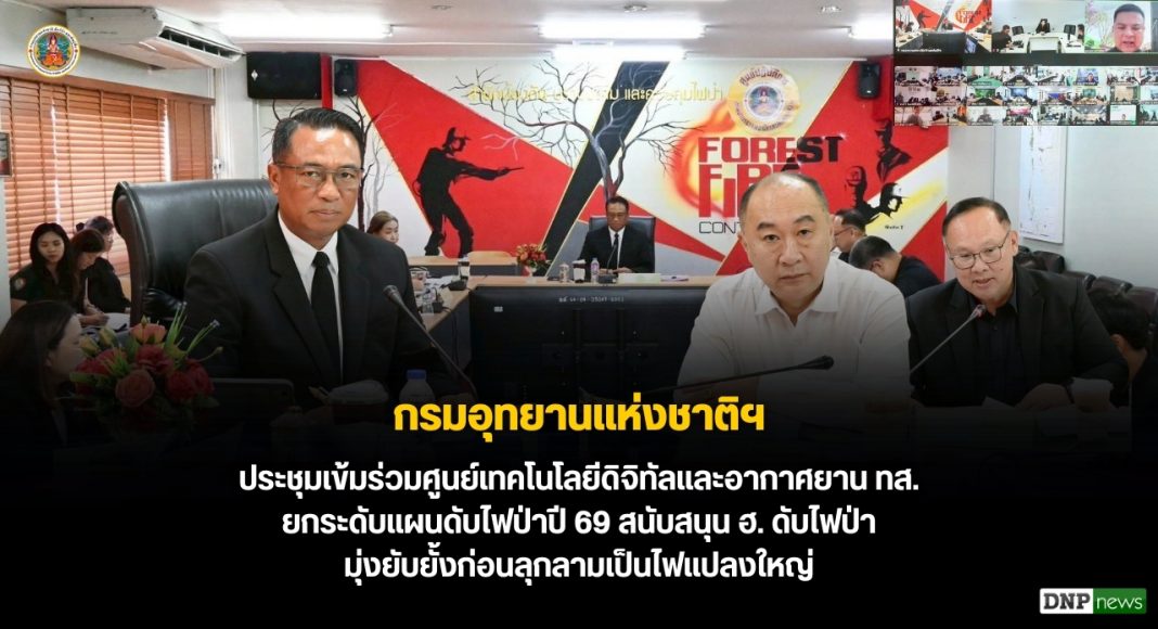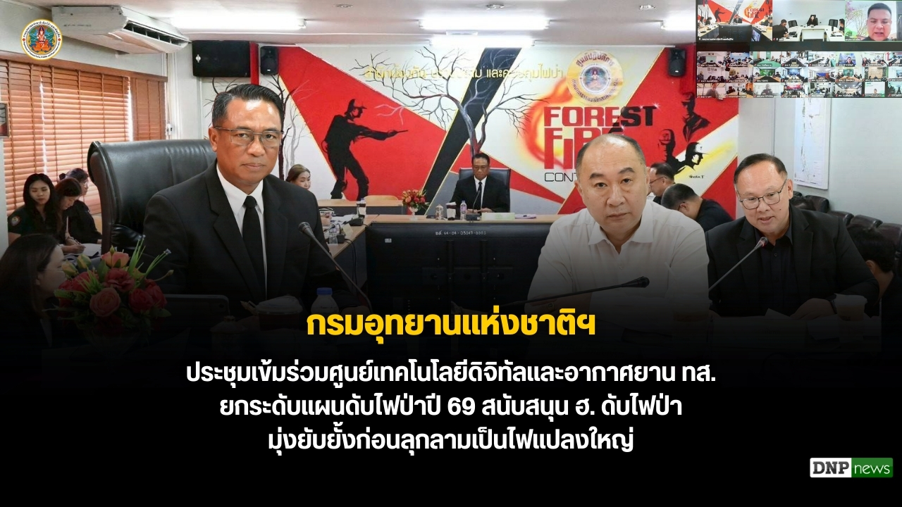 วันที่ 25 กุมภาพันธ์ 2569 นายวีระ ขุนไชยรักษ์ รองอธิบดีกรมอุทยานแห่งชาติ สัตว์ป่า และพันธุ์พืช เป็นประธานการประชุมการใช้ประโยชน์อากาศยานเฮลิคอปเตอร์ ในภารกิจป้องกันและควบคุมไฟป่า เพื่อซักซ้อมแนวทางปฏิบัติและบูรณาการการทำงานร่วมกันอย่างเต็มกำลัง โดยมีผู้บริหารระดับสูงเข้าร่วมประชุม ประกอบด้วย นายนฤพนธ์ ทิพย์มณฑา ผู้อำนวยการสำนักป้องกัน ปราบปราม และควบคุมไฟป่า นางสายสุดใจ ชุนเชาวฤทธิ์ ผู้อำนวยการสำนักอุทยานแห่งชาติ นายมานะ เพิ่มพูล ผู้อำนวยการส่วนควบคุมไฟป่า และนางอริสรา สิทธิยศ ผู้อำนวยการศูนย์เทคโนโลยีดิจิทัลและอากาศยาน พร้อมด้วยผู้อำนวยการสำนักบริหารพื้นที่อนุรักษ์ที่ 1-16 และสาขา รวมถึงเจ้าหน้าที่ที่เกี่ยวข้อง ผ่านระบบ Video Conference ณ ห้องประชุมชั้น 4 อาคารปลอดประสพ สำนักป้องกัน ปราบปราม และควบคุมไฟป่า
