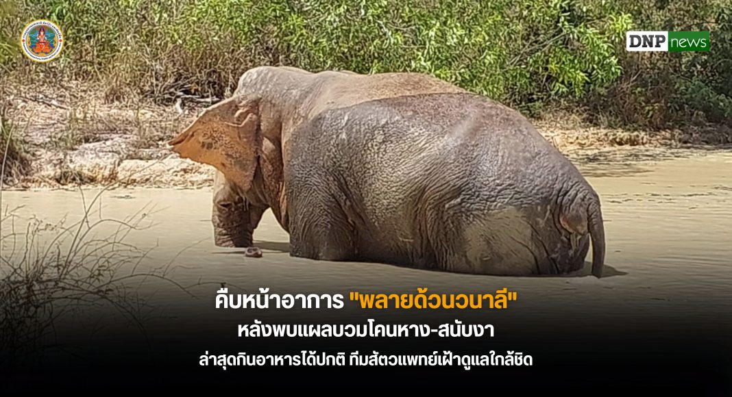 คืบหน้าอาการ “พลายด้วนวนาลี” หลังพบแผลบวมโคนหาง-สนับงา ล่าสุดกินอาหารได้ปกติ ทีมสัตวแพทย์เฝ้าดูแลใกล้ชิด