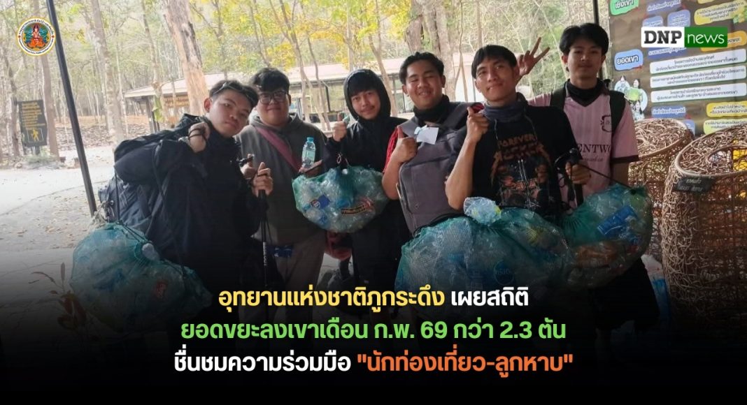 เมื่อวันที่ 1 มีนาคม 2569 นายภูวนัย มูลแวง หัวหน้าอุทยานแห่งชาติภูกระดึง ได้เปิดเผยรายงานสรุปการจัดการขยะบนยอดเขาตลอดเดือนกุมภาพันธ์ที่ผ่านมา โดยได้รับความร่วมมืออย่างดียิ่งจากนักท่องเที่ยว ผู้ประกอบการร้านค้า และกลุ่มลูกหาบ ในการนำขยะกลับลงมาสู่พื้นที่กำจัดขยะด้านล่าง เพื่อรักษาระบบนิเวศและทัศนียภาพของป่าสนให้คงความสมบูรณ์ โดยมีรายละเอียดปริมาณขยะแยกตามภาคส่วน ดังนี้