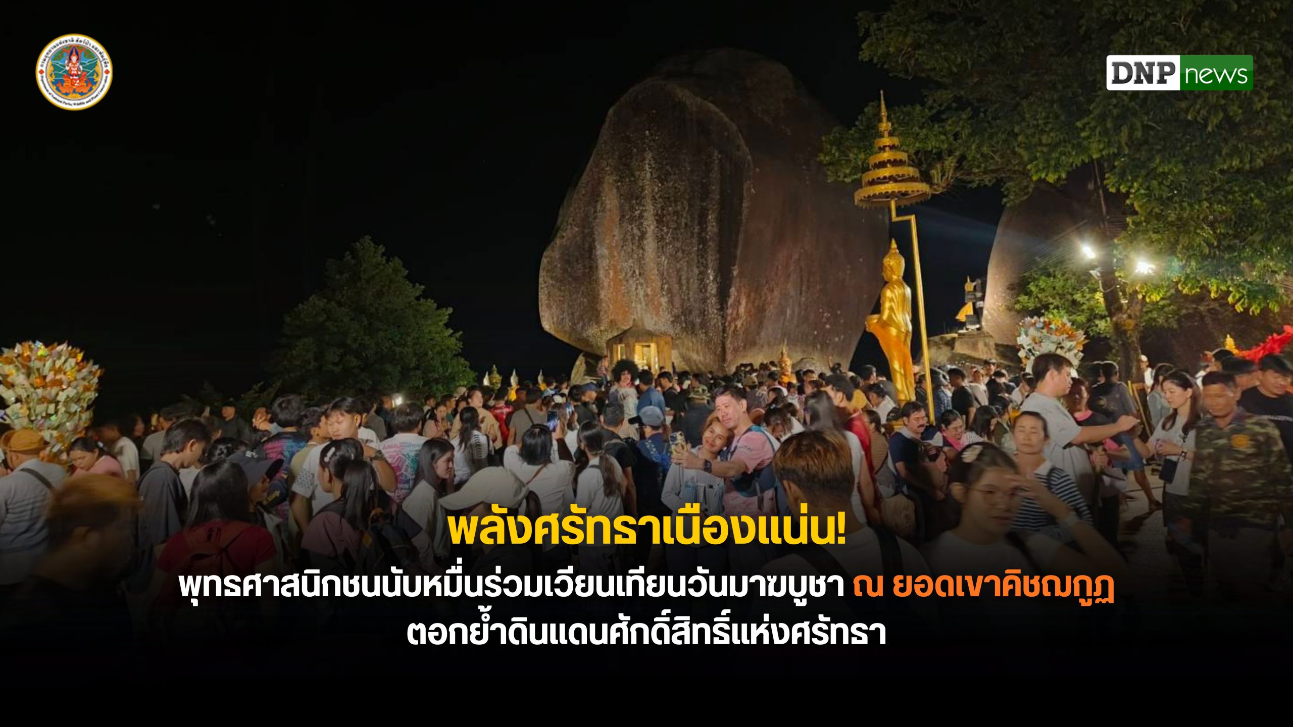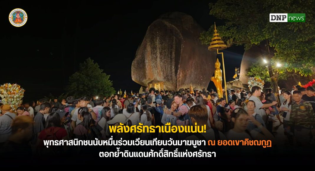 บรรยากาศวันมาฆบูชา ณ ยอดเขาคิชฌกูฏ เต็มไปด้วยความศักดิ์สิทธิ์และพลังศรัทธา พุทธศาสนิกชนจากทั่วสารทิศเดินทางร่วมพิธีเวียนเทียนท่ามกลางแสงจันทร์และขุนเขา พร้อมมาตรการดูแลความปลอดภัยเข้มข้น
