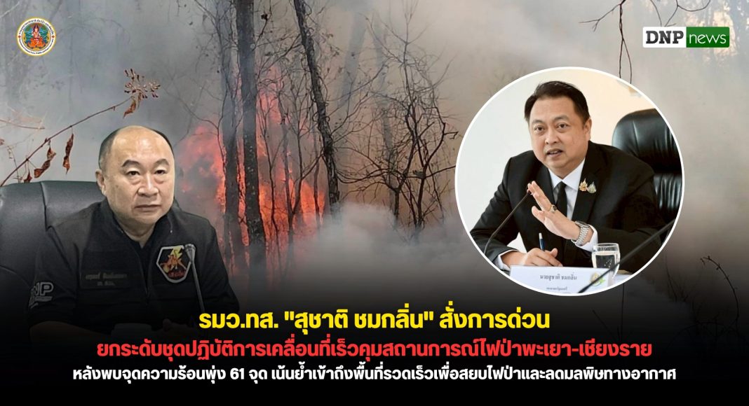 รมว. “สุชาติ” สั่งการด่วน ยกระดับชุดปฏิบัติการฯ คุมสถานการณ์ไฟป่าพะเยา-เชียงราย หลังจุดความร้อนพุ่ง 61 จุด