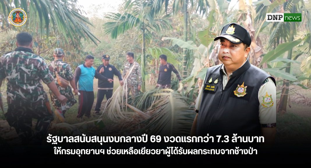 รัฐบาลสนับสนุนงบกลางปี 69 งวดแรกกว่า 7.3 ล้านบาท ให้กรมอุทยานฯ ช่วยเหลือเยียวยาผู้ได้รับผลกระทบจากช้างป่า