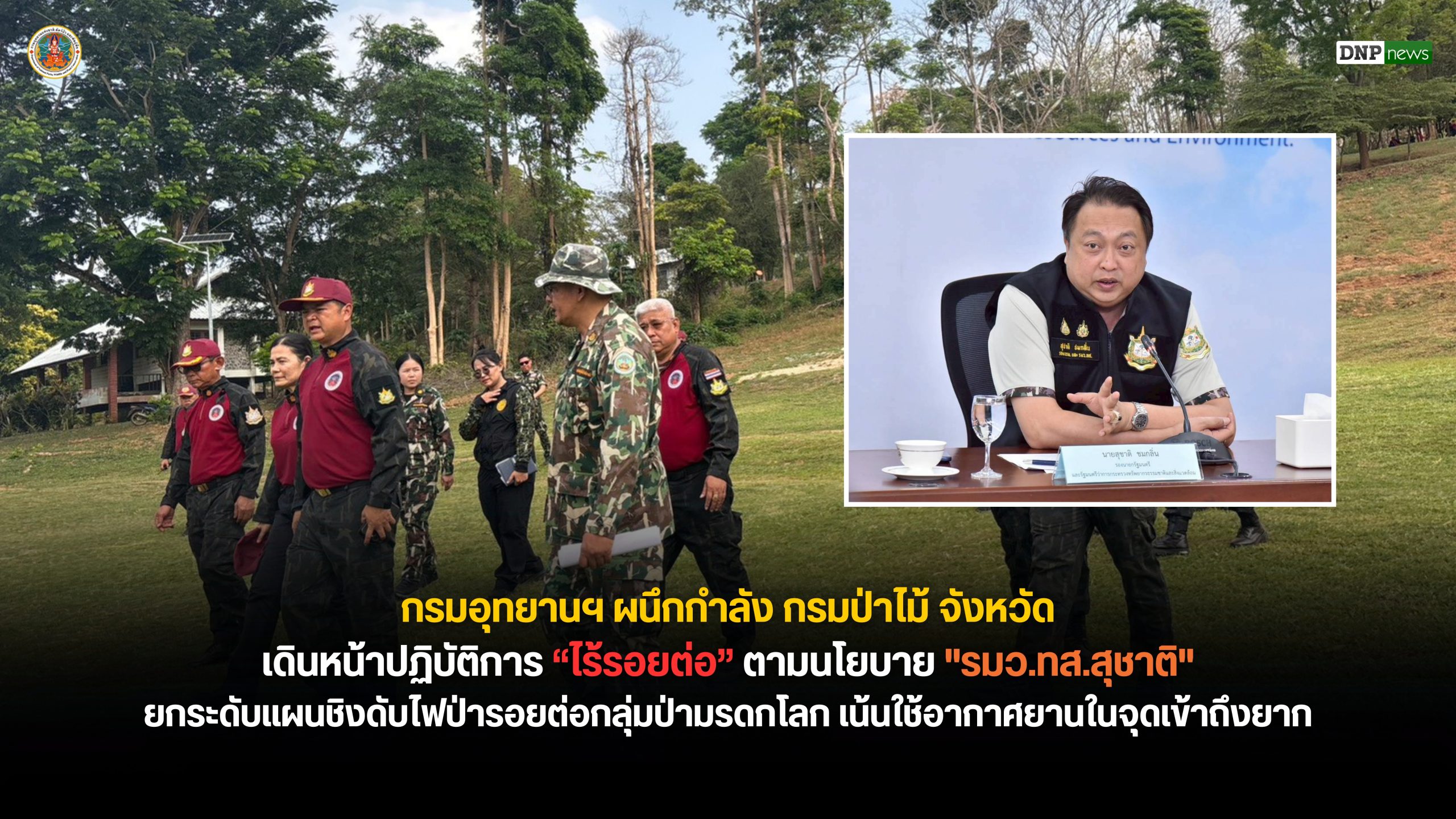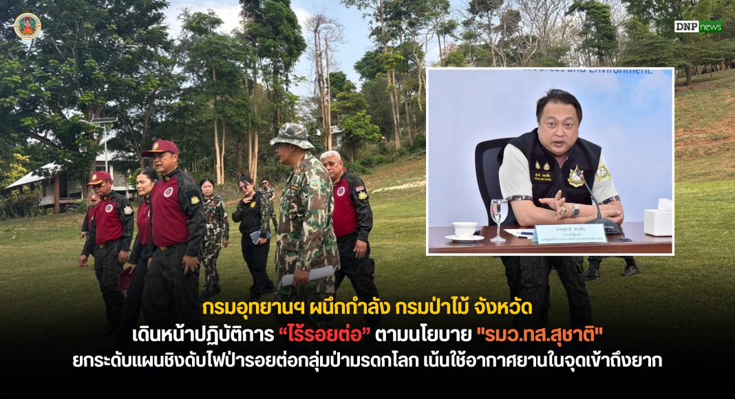 กรมอุทยานฯ ผนึกกำลัง กรมป่าไม้ จังหวัด เดินหน้าปฏิบัติการ “ไร้รอยต่อ” ตามนโยบาย “รมว.ทส.สุชาติ” ยกระดับแผนชิงดับไฟป่ารอยต่อกลุ่มป่ามรดกโลก เน้นใช้อากาศยานในจุดเข้าถึง