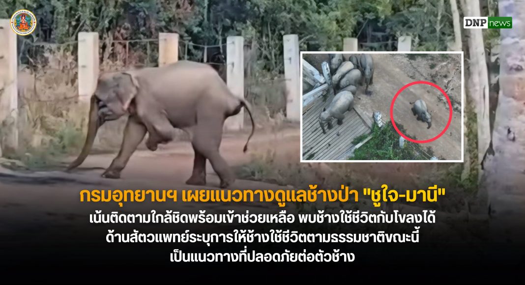 กรมอุทยานฯ เผยแนวทางดูแลช้างป่า “ชูใจ-มานี” เน้นติดตามเฝ้าระวังใกล้ชิดพร้อมเข้าช่วยเหลือ พบช้างใช้ชีวิตกับโขลงได้ ด้านสัตวแพทย์ระบุการให้ช้างใช้ชีวิตตามธรรมชาติขณะนี้เป็นแนวทางที่ปลอดภัยต่อตัวช้าง