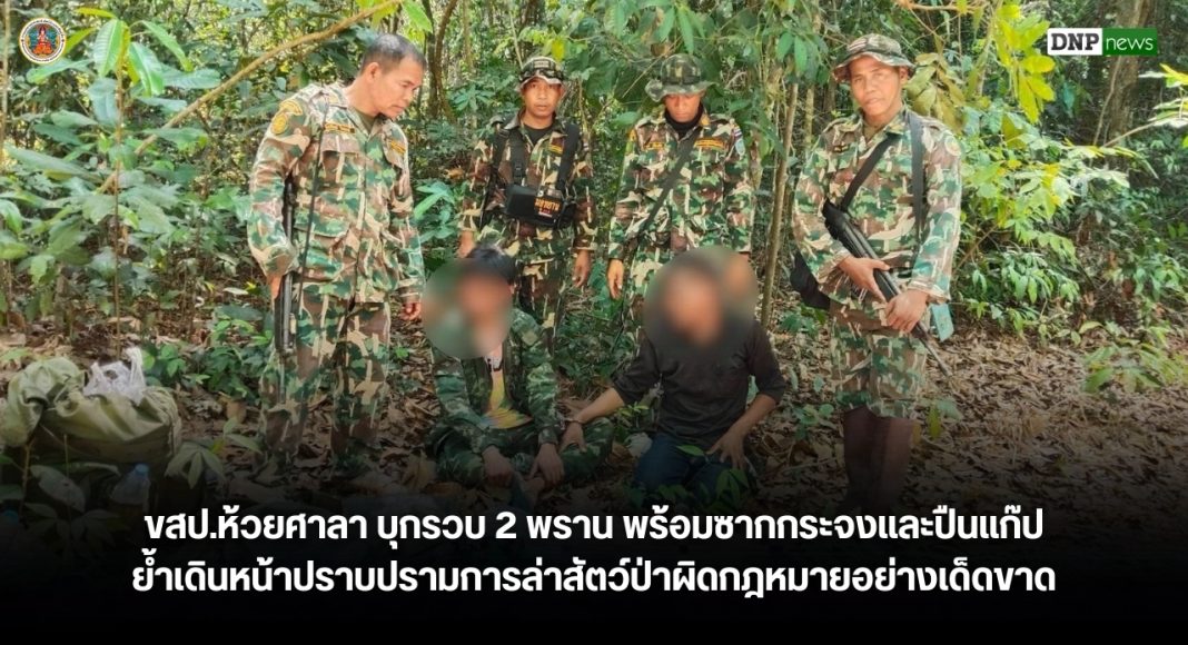 ขสป.ห้วยศาลา บุกรวบ 2 พราน พร้อมซากกระจงและปืนแก๊ป ย้ำเดินหน้าปราบปรามการล่าสัตว์ป่าผิดกฎหมายอย่างเด็ดขาด