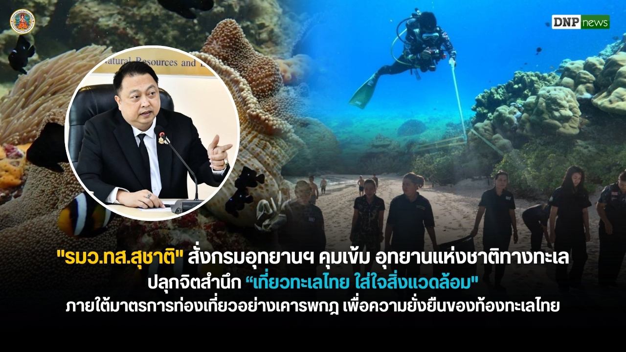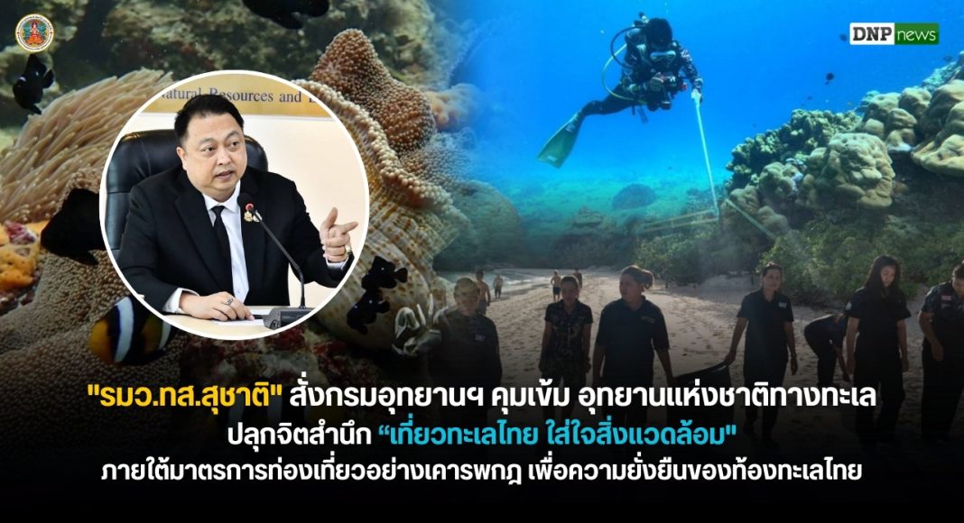 วันที่ ​8 มีนาคม​ 2569 นายอรรถพล เจริญชันษา อธิบดีกรมอุทยานแห่งชาติ สัตว์ป่า และพันธุ์พืช เปิดเผยว่า นายสุชาติ ชมกลิ่น รองนายกรัฐมนตรีและรัฐมนตรีว่าการกระทรวงทรัพยากรธรรมชาติและสิ่งแวดล้อม ได้มอบนโยบายเร่งด่วนให้กรมอุทยานแห่งชาติฯ บูรณาการการทำงานเพื่อยกระดับมาตรฐานการท่องเที่ยวในเขตอุทยานแห่งชาติทางทะเล โดยเน้นย้ำให้นักท่องเที่ยวและผู้ประกอบการต้องปฏิบัติตามกฎระเบียบอย่างเคร่งครัด เพื่อรักษาทรัพยากรธรรมชาติอันล้ำค่าของชาติ และป้องกันความเสียหายต่อระบบนิเวศที่เปราะบาง​ โดยให้บังคับใช้กฎหมายอย่างเคร่งครัด​ ภายใต้มาตรการ “การท่องเที่ยวอย่างเคารพกฎ” มุ่งเน้นการจัดการขยะและการปกป้องระบบนิเวศ​ และสัตว์ทะเลหายากอย่างยั่งยืน