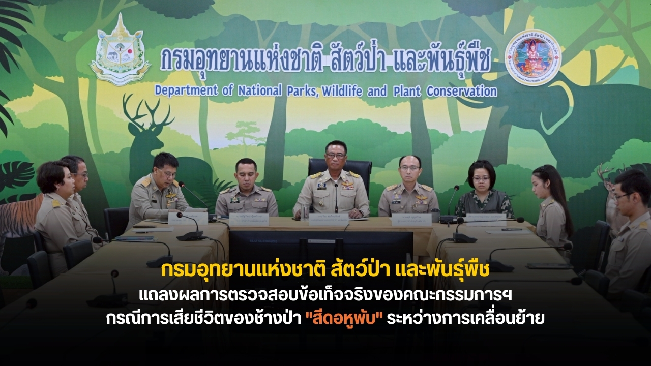 วันที่ 9 มีนาคม 2569 เวลา 10.00 น. นายวีระ ขุนไชยรักษ์ รองอธิบดีกรมอุทยานแห่งชาติ สัตว์ป่า และพันธุ์พืช ในฐานะผู้กำกับดูแลคณะกรรมการตรวจสอบข้อเท็จจริง กรณีช้างป่าสีดอหูพับเสียชีวิตระหว่างการเคลื่อนย้าย เป็นประธานการแถลง กรณีช้างป่าสีดอหูพับเสียชีวิตระหว่างการเคลื่อนย้าย พร้อมด้วย นายธานี วงศ์นาค ประธานคณะกรรมการตรวจสอบข้อเท็จจริงฯ เป็นผู้แถลงผลตรวจสอบของคณะกรรมการฯ นายสุขี บุญสร้าง ผู้อำนวยการสำนักอนุรักษ์สัตว์ป่า นายณัฐวัฒน์ นุ้ยศรีราม ผู้อำนวยการสำนักบริหารพื้นที่อนุรักษ์ที่ 8 ขอนแก่น และสัตวแพทย์หญิงกิรณา นรเดชานนท์ สัตวแพทย์กรมอุทยานแห่งชาติฯ ร่วมแถลงผลด้วย ณ ห้องประชุมชั้น 4 อาคาร อเนกประสงค์ กรมอุทยานแห่งชาติ สัตว์ป่า และพันธุ์พืช