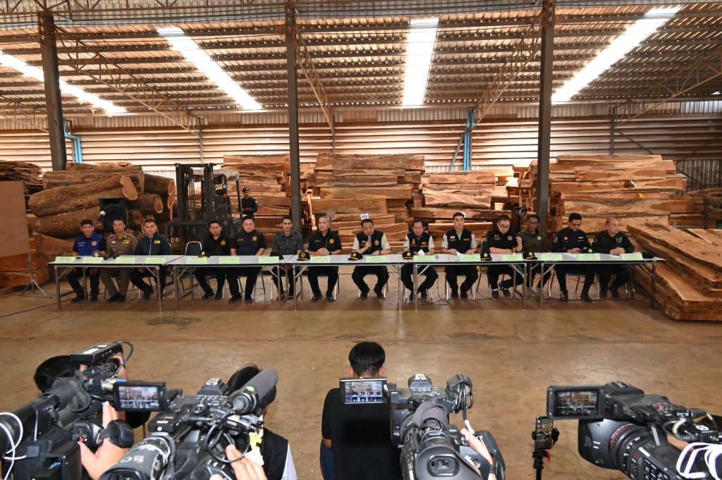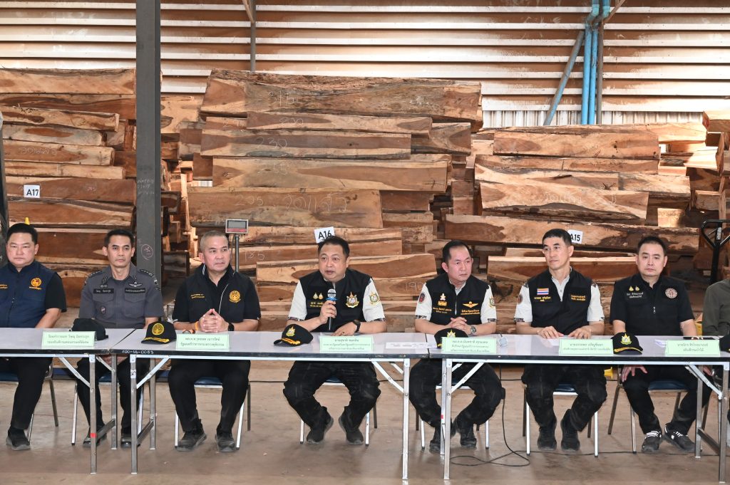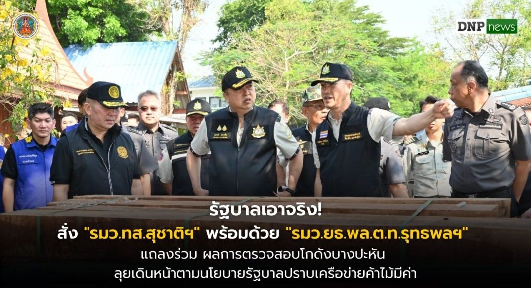 วันที่ 12 มีนาคม 2569 เวลา 09.30 น. นายสุชาติ ชมกลิ่น รองนายกรัฐมนตรีและรัฐมนตรีว่าการกระทรวงทรัพยากรธรรมชาติและสิ่งแวดล้อม (ทส.) และ พล.ต.ท.รุทธพล เนาวรัตน์ รัฐมนตรีว่าการกระทรวงยุติธรรม (ยธ.) ได้รับมอบหมายจากนายอนุทิน ชาญวีรกูล นายกรัฐมนตรี ร่วมแถลงข่าวและนำทีมลงพื้นที่ติดตามการตรวจสอบโกดังของ บริษัท ภาคินเทรดดิ้ง (5588) จำกัด ตั้งอยู่เลขที่ 43/1 หมู่ 5 ตำบลหันสัง อำเภอบางปะหัน จังหวัดพระนครศรีอยุธยา พร้อมด้วย พล.ต.ต.นันทชาติ ศุภมงคล ที่ปรึกษารัฐมนตรีว่าการกระทรวงทรัพยากรธรรมชาติและสิ่งแวดล้อม นายอรรถพล เจริญชันษา อธิบดีกรมอุทยานแห่งชาติ สัตว์ป่า และพันธุ์พืช นายนิกร ศิรโรจนานนท์ อธิบดีกรมป่าไม้ พล.ต.ต.เอนก เตาสุภาพ ผู้กำกับการกองบังคับการปราบปรามการกระทำความผิดเกี่ยวกับทรัพยากรธรรมชาติและสิ่งแวดล้อม ร.ต.อ.วิษณุ ฉิมตระกูล รองอธิบดีกรมสอบสวนคดีพิเศษ นายชวนินทร์ วงศ์สถิตจิรกาล ผู้ว่าราชการจังหวัดพระนครศรีอยุธยา นายชนุดม เพชรสังข์ รักษาการแทนผู้อำนวยการองค์การอุตสาหกรรมป่าไม้ นายนฤพนธ์ ทิพย์มณฑา ผู้อำนวยการสำนักป้องกัน ปราบปราม และควบคุมไฟป่า นายโกสิทธิ์ นิลรัตน์ ผู้อำนวยการสำนักป้องกันรักษาป่าและควบคุมไฟป่า นายชุติเดช กมนณชนุตม์ ผู้อำนวยการสำนักงานทรัพยากรธรรมชาติและสิ่งแวดล้อมจังหวัดพระนครศรีอยุธยา นายอังศุเกติ์ วิสุทธิ์วัฒนศักดิ์ ผู้อำนวยการกองกิจการอำนวยความยุติธรรม พ.ต.อ.ปองพล ประสบภัย ผู้กำกับสถานีตำรวจภูธรพระนครศรีอยุธยา นายชัยชาญ ศรียงค์ ผู้อำนวยการสำนักบริหารพื้นที่อนุรักษ์ที่ 16 สาขาแม่สะเรียง และเจ้าหน้าที่ที่เกี่ยวข้อง