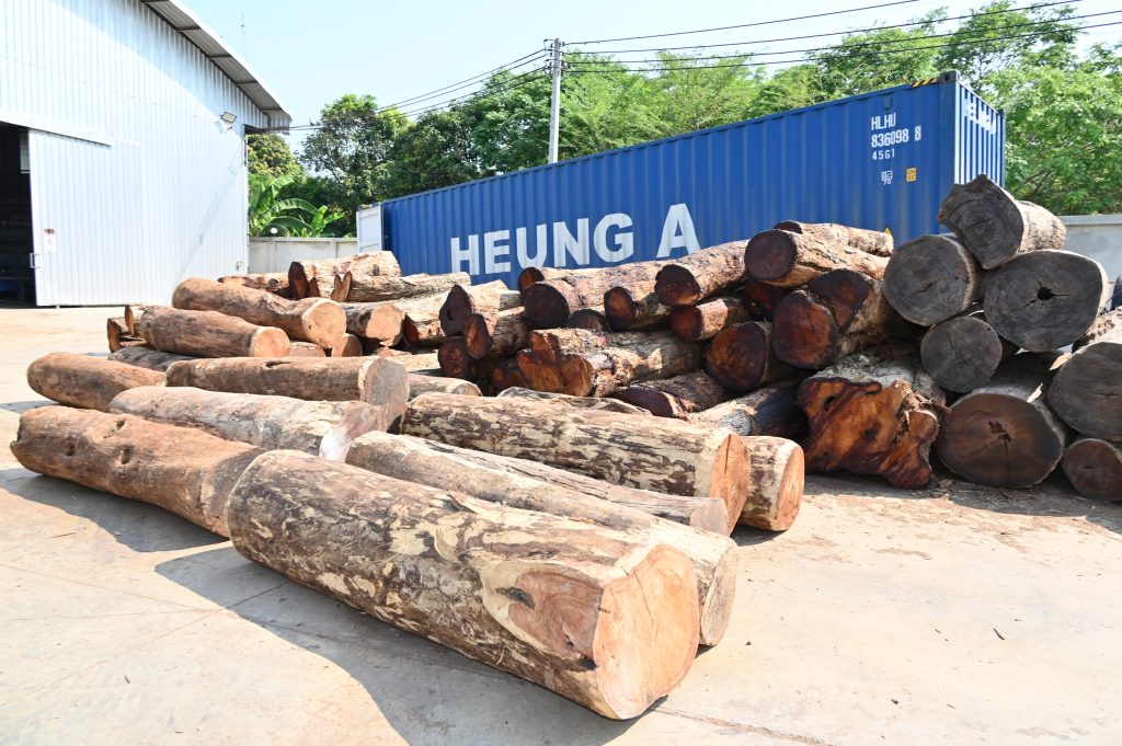 โดยเจ้าหน้าที่กรมสอบสวนคดีพิเศษ ได้ติดตามขยายผลพบความเคลื่อนไหว เมื่อวันที่ 11 มีนาคม 2569 เวลา 01.30 น. มีการนำเข้า-ส่งออกไม้จากโกดังแห่งนี้ โดยใช้รถยนต์บรรทุกเทรลเลอร์มุ่งหน้าสู่จังหวัดชลบุรี พบไม้ประดู่จำนวน 34 ท่อน ปริมาตรและความยาวไม่ตรงกับเอกสารที่นำมาแสดงให้กับทางเจ้าหน้าที่ จึงได้อายัดรถยนต์บรรทุกเทรลเลอร์ พร้อมไม้ประดู่ 34 ท่อน ซึ่งอยู่ภายในตู้คอนเทนเนอร์ และได้นำไปเก็บรักษาไว้ที่หน่วยป้องกันรักษาป่าที่ ชบ.1 (บางละมุง) จ.ชลบุรี และเมื่อเวลา 10.00 น. ได้ตรวจยึดและอายัดรถบรรทุกจำนวน 2 คัน โดยได้มีการดำเนินคดี จำนวน 1 คัน ซึ่ง บรรทุกไม้มาจากอำเภอแม่สอด จังหวัดตาก มีลักษณะการลักลอบซุกซ่อนไม้ประดู่ โดยสำแดงสินค้าเป็นมันสำปะหลังเพื่ออำพรางการตรวจสอบ ส่วนรถบรรทุกอีก 1 คัน ที่บรรทุกไม้มาจากจังหวัดบุรีรัมย์ ได้มีการอายัดเพื่อรอการตรวจสอบต่อไป
