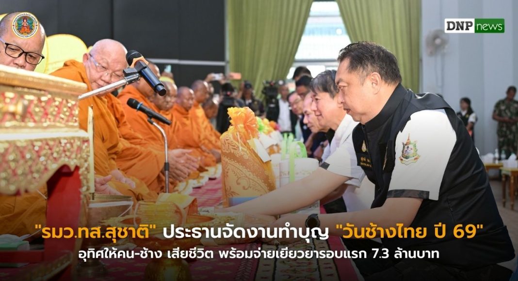 วันที่ 13 มีนาคม 2569 นายสุชาติ ชมกลิ่น รองนายกรัฐมนตรีและรัฐมนตรีว่าการกระทรวงทรัพยากรธรรมชาติและสิ่งแวดล้อม (รมว.ทส.) เป็นประธานในพิธีทำบุญอุทิศส่วนกุศลแก่ประชาชนและช้างป่าที่เสียชีวิตจากเหตุความขัดแย้งระหว่างคนกับช้าง เนื่องในงาน “วันช้างไทย ประจำปี 2569” โดยมีนายอรรถพล เจริญชันษา อธิบดีกรมอุทยานแห่งชาติ สัตว์ป่า และพันธุ์พืช นายมนต์สิทธิ์ ไพศาลธนวัฒน์ ผู้ว่าราชการจังหวัดจันทบุรี นายวีระ ขุนไชยรักษ์ รองอธิบดีกรมอุทยานแห่งชาติฯ นายสุขี บุญสร้าง ผู้อำนวยการสำนักอนุรักษ์สัตว์ป่า นายสราวุธ อุเทนรัตน์ ผู้อำนวยการสำนักบริหารพื้นที่อนุรักษ์ที่ 2 (ศรีราชา) พร้อมด้วยหน่วยงานภาครัฐ เอกชน ประชาชน นักเรียน เจ้าหน้าที่ชุดเคลื่อนที่เร็วเฝ้าระวัง ผลักดันช้างป่าและแก้ไขปัญหาช้างป่าออกนอกพื้นที่ และเจ้าหน้าที่ที่เกี่ยวข้อง เข้าร่วมงานกว่า 500 คน ณ โรงเรียนราชประชานุเคราะห์ 48 จังหวัดจันทบุรี ตำบลพลวง อำเภอเขาเขาคิชฌกูฏ จังหวัดจันทบุรี