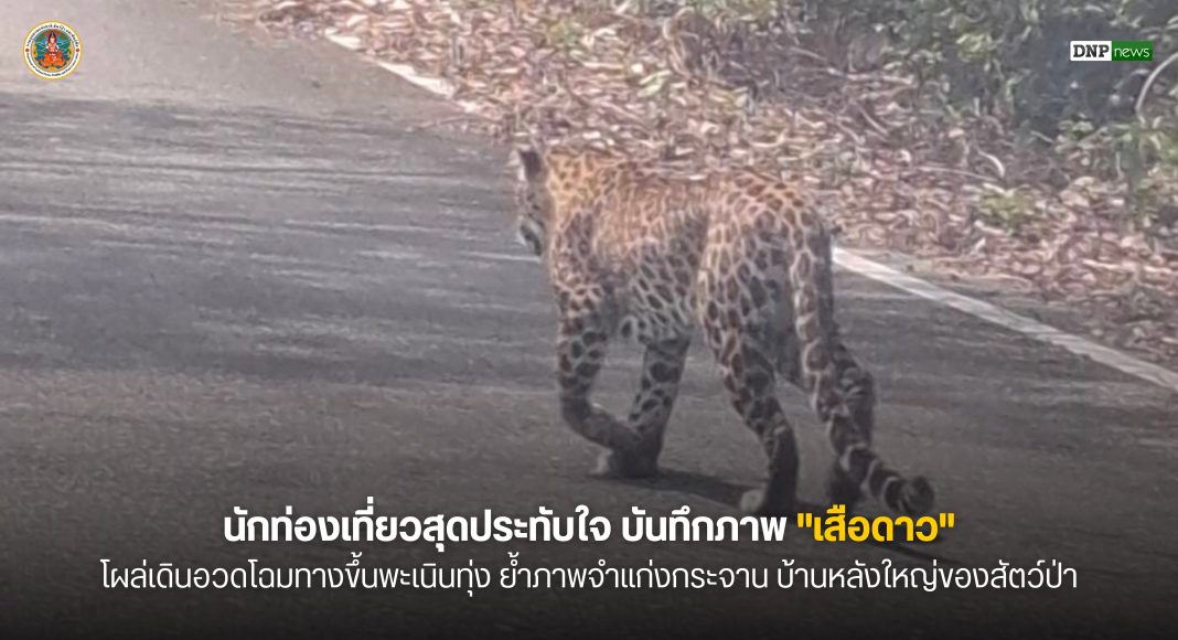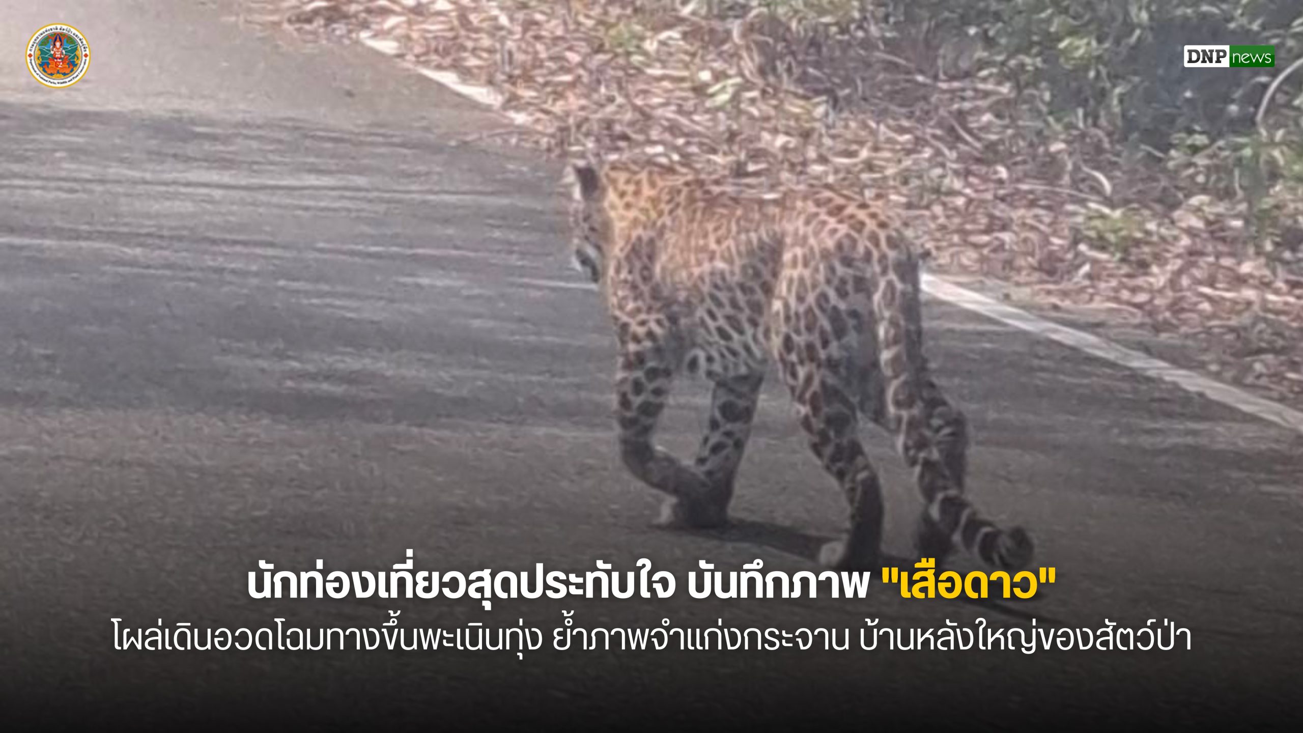 นักท่องเที่ยวสุดประทับใจ บันทึกภาพ “เสือดาว” โผล่เดินอวดโฉมทางขึ้นพะเนินทุ่ง ย้ำภาพจำแก่งกระจาน บ้านหลังใหญ่ของสัตว์ป่า