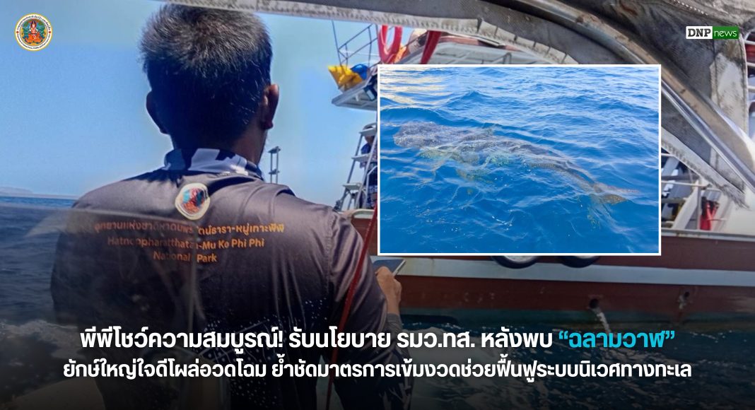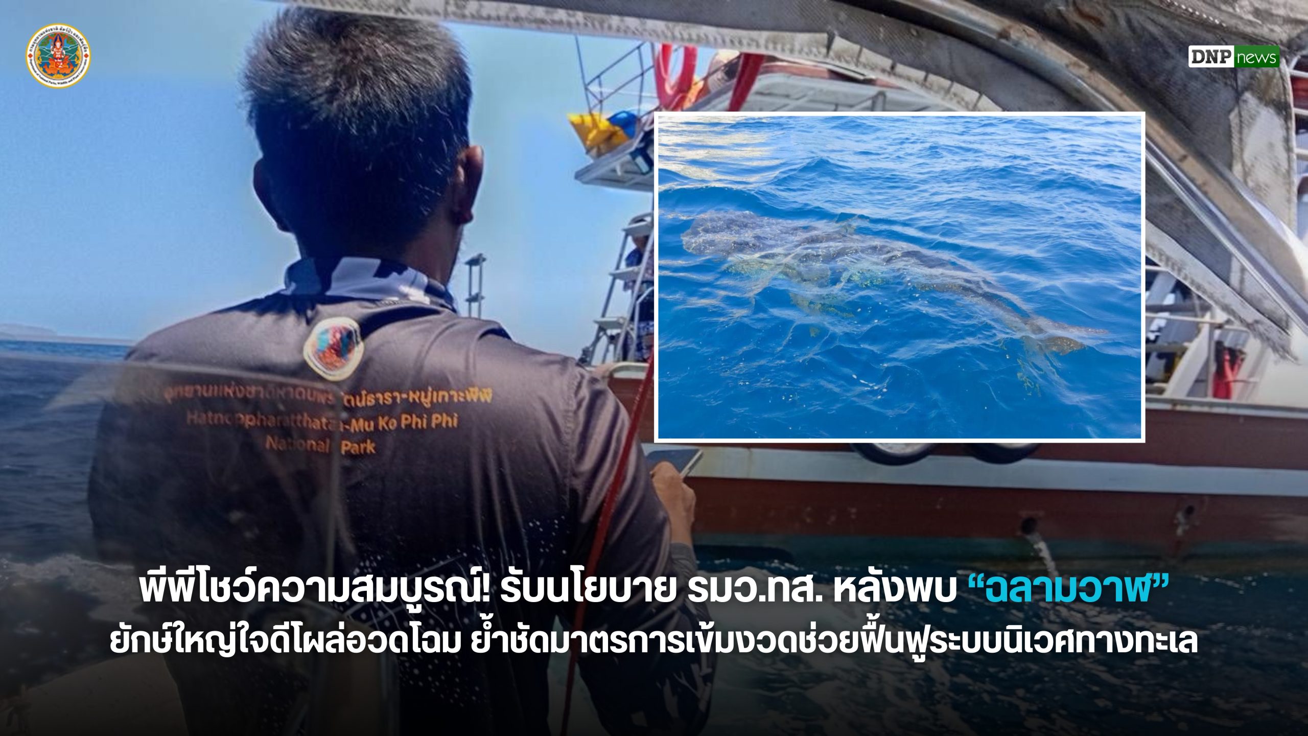 เมื่อวันที่ 15 มีนาคม 2569 อุทยานแห่งชาติหาดนพรัตน์ธารา-หมู่เกาะพีพี ขานรับนโยบายรัฐมนตรีว่าการกระทรวงทรัพยากรธรรมชาติและสิ่งแวดล้อม (ทส.) และอธิบดีกรมอุทยานแห่งชาติ สัตว์ป่า และพันธุ์พืช โชว์ผลสำเร็จการดูแลทรัพยากรทางทะเล หลังเจ้าหน้าที่บันทึกภาพ “ฉลามวาฬ” โผล่เหนือน้ำโชว์ตัวให้นักท่องเที่ยวชมบริเวณเกาะบิดะใน-เกาะบิดะนอก เน้นย้ำมาตรการท่องเที่ยวเชิงอนุรักษ์