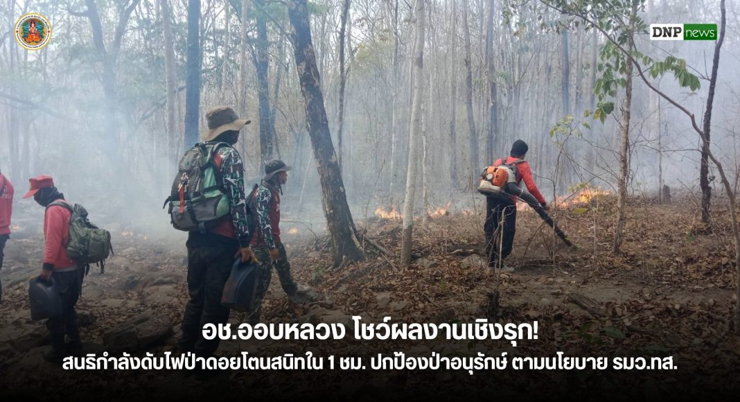 วันนี้ (20 มีนาคม 2569) นางสาวนิภาพร ไพศาล หัวหน้าอุทยานแห่งชาติออบหลวง สำนักบริหารพื้นที่อนุรักษ์ที่ 16 (เชียงใหม่) รายงานผลการปฏิบัติงานเชิงรุกในการเฝ้าระวังและดับไฟป่าบริเวณดอยโตน เมื่อเวลา 13.06 น. ขณะที่เจ้าหน้าที่ชุดลาดตระเวนกำลังปฏิบัติหน้าที่ตามแนวทางเฝ้าระวังเชิงรุก ได้ตรวจพบกลุ่มควันไฟบริเวณดอยโตน ม.9 ต.หางดง อ.ฮอด จ.เชียงใหม่ พิกัด 47Q 455250 E 2010400 N จึงได้เร่งระดมกำลังเข้าพื้นที่ทันที โดยเป็นการสนธิกำลังรวม 12 นาย ประกอบด้วย เจ้าหน้าที่สถานีควบคุมไฟป่าออบหลวง จำนวน 7 นาย และเครือข่ายอาสาสมัครพิทักษ์อุทยานแห่งชาติ (อส.อส.) บ้านห้วยส้มป่อย จำนวน 5 นาย เจ้าหน้าที่และเครือข่ายภาคประชาชนเริ่มปฏิบัติการดับไฟตั้งแต่เวลา 13.40 น. โดยสามารถควบคุมเพลิงและดับไฟได้สนิทอย่างรวดเร็วในเวลา 14.42 น. จากการตรวจสอบพื้นที่ป่าอนุรักษ์ได้รับความเสียหายรวม 38 ไร่ ซึ่งจากการตรวจสอบเบื้องต้นสาเหตุเกิดจากการลักลอบจุดไฟเพื่อหาของป่า