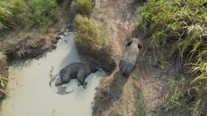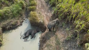 นายยศวัฒน์ เธียรสวัสดิ์ ผู้อำนวยการสำนักบริหารพื้นที่อนุรักษ์ที่ 1 (ปราจีนบุรี) เปิดเผยว่า จากการติดตามสถานการณ์อย่างใกล้ชิดร่วมกับเครือข่ายเฝ้าระวังช้างป่าในพื้นที่ตำบลเขาไม้แก้ว และตำบลวังท่าช้าง อำเภอกบินทร์บุรี ล่าสุดภาพจากโดรนได้บันทึกภาพ “เจ้างาเบี่ยง” ซึ่งเป็นช้างป่าตัวผู้ที่มีเอกลักษณ์โดดเด่นคืองาโค้งผิดปกติ กำลังหากินและเล่นโคลนในไร่อ้อยของเกษตรกรอย่างสบายอารมณ์ โดยพบว่ามีช้างป่าอีกหนึ่งตัวร่วมขบวนด้วย สถานการณ์ดังกล่าวสร้างความกังวลใจให้กับเกษตรกรในพื้นที่เป็นอย่างมาก เนื่องจากขณะนี้กำลังเข้าสู่ช่วงโค้งสุดท้ายของการเก็บเกี่ยวอ้อยเพื่อส่งโรงงานน้ำตาล (ฤดูปิดหีบ) ในเดือนเมษายน ซึ่งเป็นช่วงเวลาที่เกษตรกรจำเป็นต้องลงพื้นที่ทำงานอย่างต่อเนื่อง ทำให้มีความเสี่ยงสูงต่อการเผชิญหน้ากับช้างป่าโดยไม่คาดคิด
