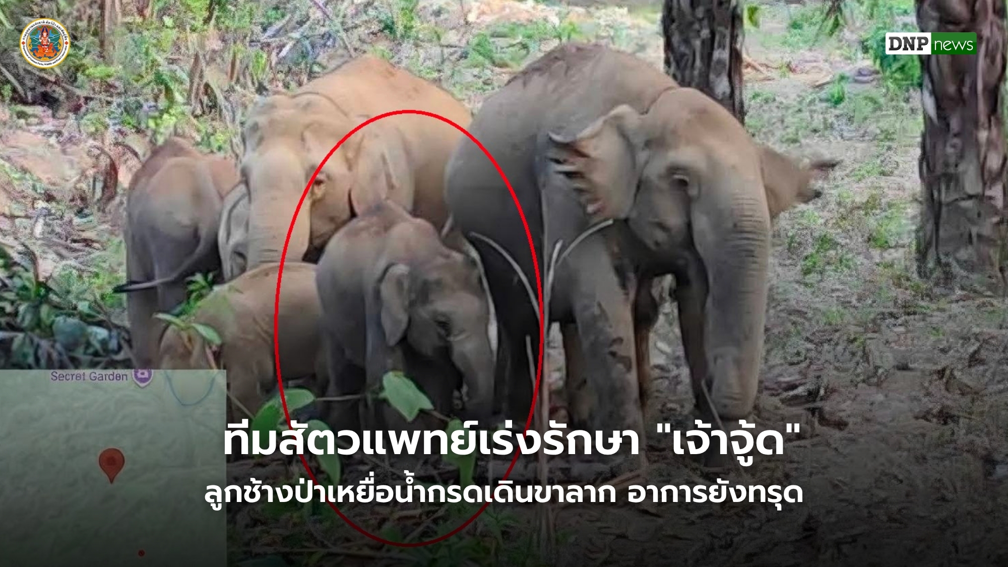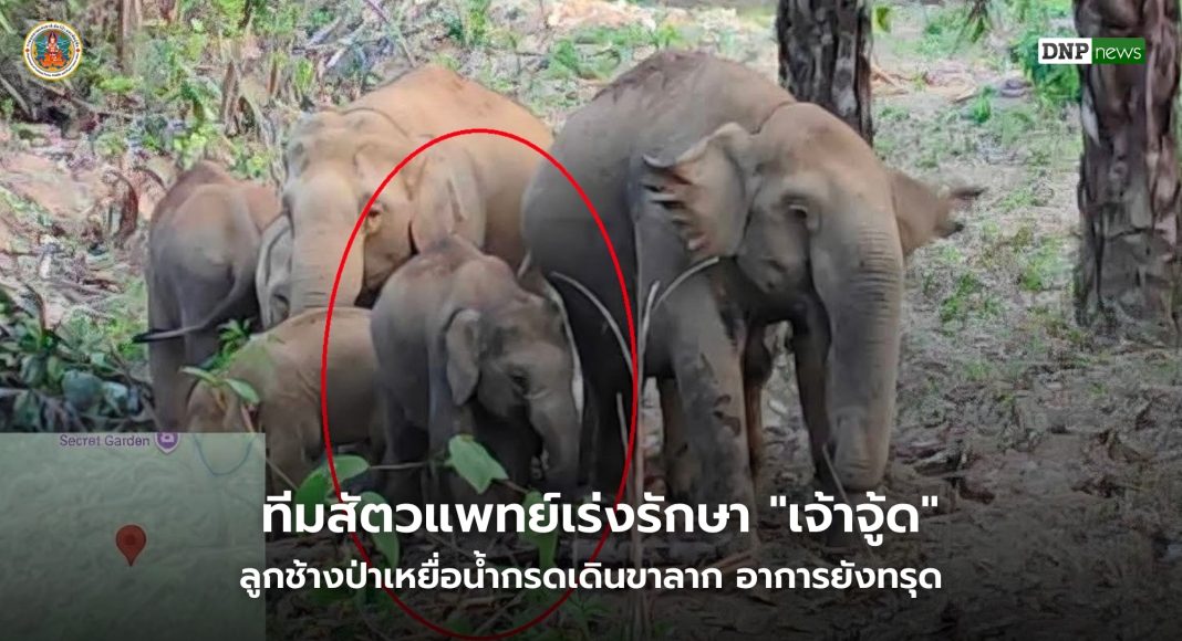วันที่ 29 มีนาคม 2569 นายอรุณ พงศ์ไพฑูรย์ ผู้อำนวยการส่วนอนุรักษ์สัตว์ป่า สำนักบริหารพื้นที่อนุรักษ์ที่ 2 (ศรีราชา) เปิดเผยรายงานปฏิบัติการรักษา “เจ้าจู้ด” ลูกช้างป่าเพศผู้วัย 3 ปี น้ำหนักประมาณ 400-500 กิโลกรัม หลังประสบอุบัติเหตุสัมผัสน้ำกรดหยอดยางพาราจนแผลเน่าเปื่อย ผิวหนังยุ่ยตั้งแต่ช่วงหัวเข่าจนถึงข้อเท้าขาหน้าซ้าย โดยล่าสุดทีมเจ้าหน้าที่ต้องสนธิกำลังบุกป่ารอยต่อจังหวัดตราดและจันทบุรี เพื่อปฏิบัติภารกิจยิงยารักษาระยะไกลท่ามกลางความมืด หลังได้รับรายงานด่วนว่าลูกช้างน้อยอาการยังไม่ดีขึ้น และไม่สามารถเดินลงน้ำหนักได้ตามปกติ