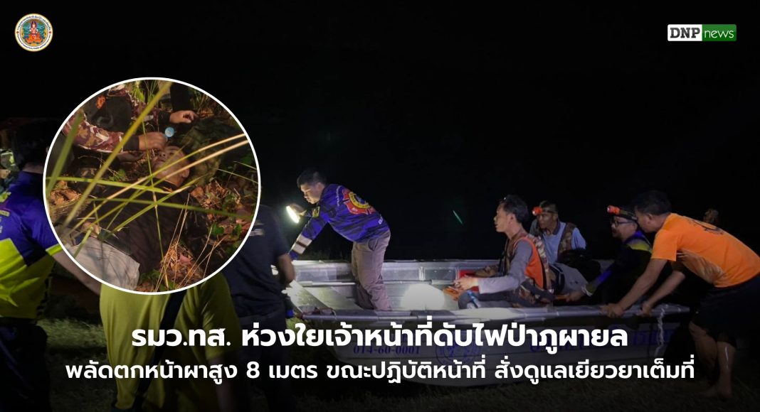 เหตุการณ์ดังกล่าวเกิดขึ้นเมื่อวันที่ 31 มีนาคม 2569 เวลาประมาณ 16.00 น. ขณะที่เจ้าหน้าที่หน่วยพิทักษ์อุทยานแห่งชาติที่ ภย.4 (ห้วยโท) พร้อมด้วยเครือข่าย อส.อส. บ้านโพนประดู่ กำลังเร่งสกัดกั้นไฟป่าในเขตอุทยานแห่งชาติภูผายล ท้องที่ตำบลคำพี้ อำเภอนาแก จังหวัดนครพนม ในระหว่างปฏิบัติหน้าที่ นายนฤพล ขันเงิน บุคคลภายนอกปฏิบัติงาน (ประเภท 1) ได้เกิดอุบัติเหตุเสียหลักลื่นไถลพลัดตกจากหน้าผาสูงกว่า 8 เมตร เป็นเหตุให้ได้รับบาดเจ็บรุนแรงบริเวณเท้าซ้าย ข้อมือ และช่วงเอว จนไม่สามารถเคลื่อนไหวได้