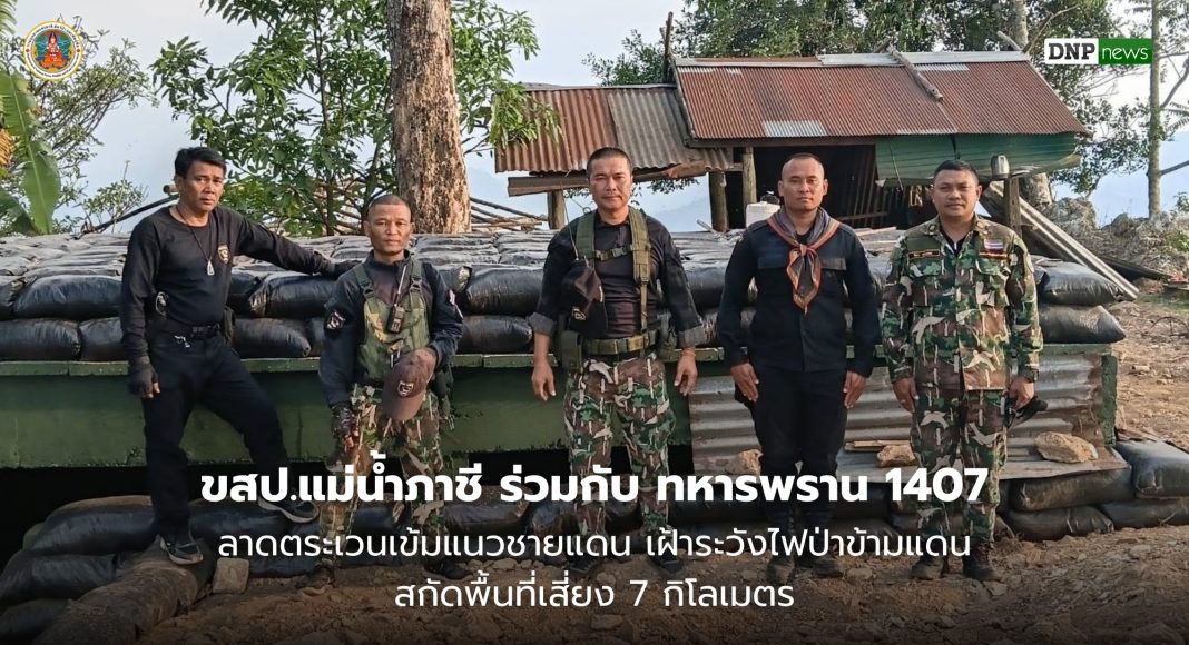 เจ้าหน้าที่เขตรักษาพันธุ์สัตว์ป่า (ขสป.) แม่น้ำภาชี ได้ประสานการปฏิบัติร่วมกับกองร้อยทหารพราน 1407 (หน่วยเฉพาะกิจม้าศึก) จัดกำลังร่วมลาดตระเวนตรวจการณ์สถานการณ์ไฟป่าตลอดแนวตะเข็บชายแดน ตั้งแต่บริเวณช่องทางโป่งแห้ง จนถึงช่องทางห้วยจะเอว รวมระยะทางกว่า 7 กิโลเมตร เพื่อประเมินสถานการณ์และสกัดกั้นไม่ให้ไฟป่าลุกลามข้ามพรมแดนเข้ามายังพื้นที่อนุรักษ์ของประเทศไทย