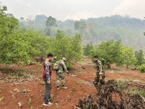 จากการลงพื้นที่บริเวณสวนอะโวคาโดและไร่มันสำปะหลัง ห่างจากหมู่บ้านเพียง 500 เมตร เจ้าหน้าที่พบรอยเท้าสัตว์ป่าจำนวนมากกระจายอยู่บนพื้นดิน วัดความกว้างอุ้งเท้าได้ประมาณ 9 เซนติเมตร และความยาวรวมประมาณ 15 เซนติเมตร ซึ่งจากการประสานข้อมูลกับสถานีวิจัยสัตว์ป่าดอยเชียงดาว ยืนยันว่าเป็นรอยเท้าของ “เสือโคร่งโตเต็มวัย”