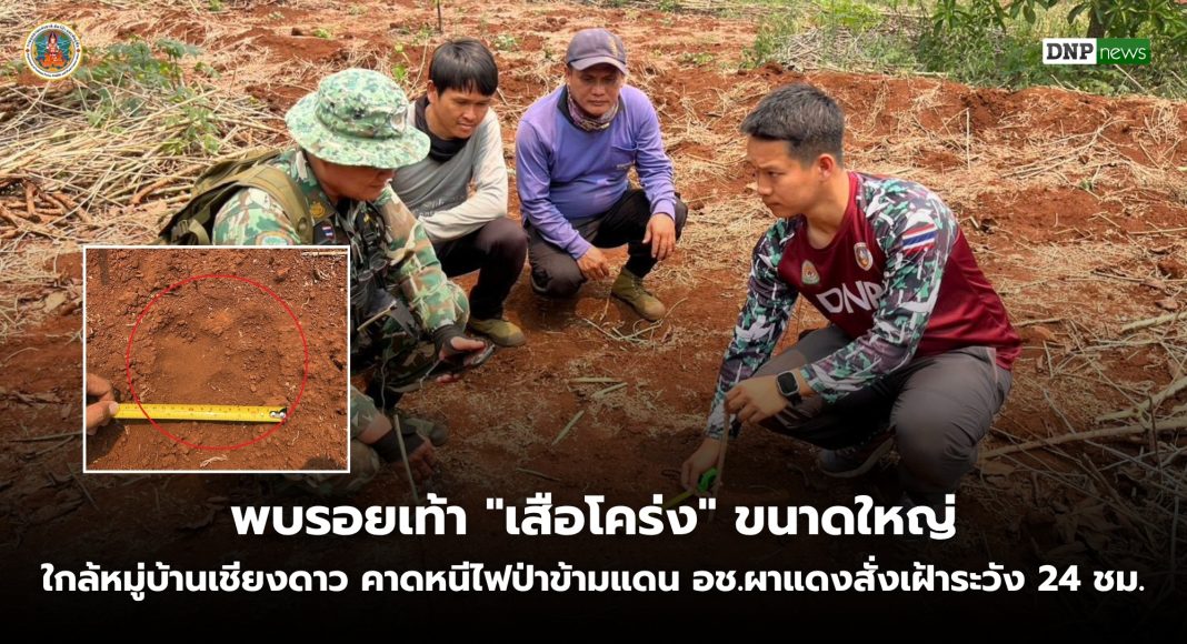 เมื่อวันที่ 2 เมษายน 2568 นายประกาศิต ระวิวรรณ หัวหน้าอุทยานแห่งชาติผาแดง เปิดเผยว่า ได้รับแจ้งจากชาวบ้านหนองเขียว ต.เมืองนะ อ.เชียงดาว จ.เชียงใหม่ ขณะเข้าไปทำไร่มันสำปะหลังว่า พบร่องรอยคล้ายรอยเท้าสัตว์ป่าขนาดใหญ่ จึงได้สั่งการให้ชุดสายตรวจส่วนกลางเข้าตรวจสอบพื้นที่ทันที