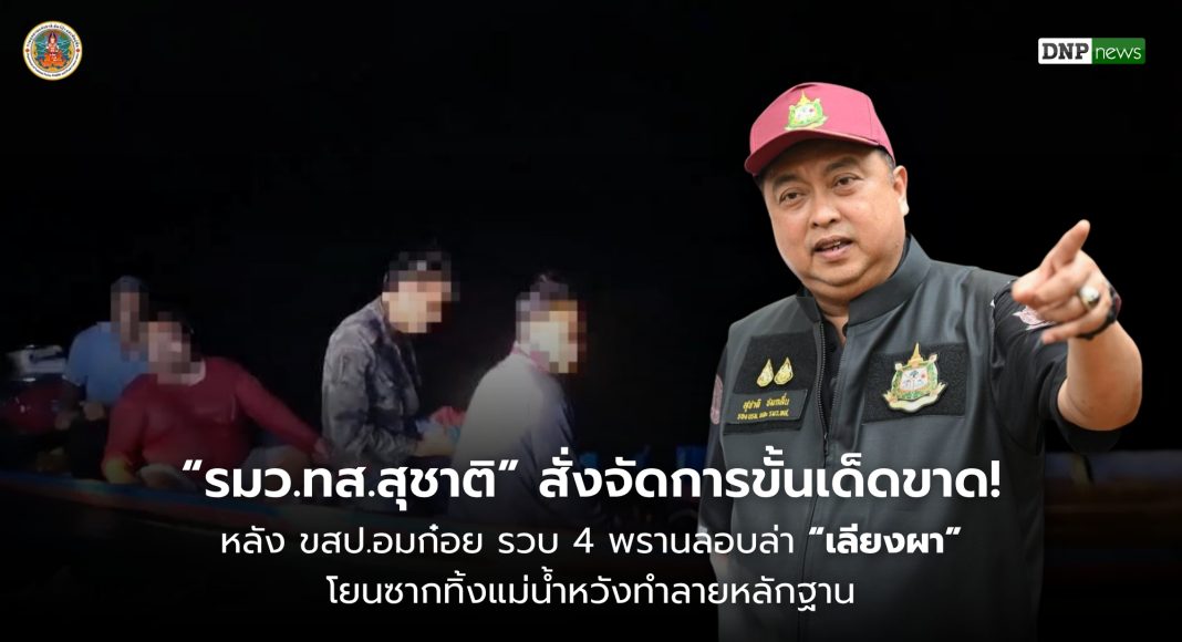 “รมว.ทส.สุชาติ” สั่งจัดการขั้นเด็ดขาด! หลัง ขสป.อมก๋อย รวบ 4 พรานลอบล่า “เลียงผา” ริมน้ำปิง โยนซากทิ้งแม่น้ำหวังทำลายหลักฐาน