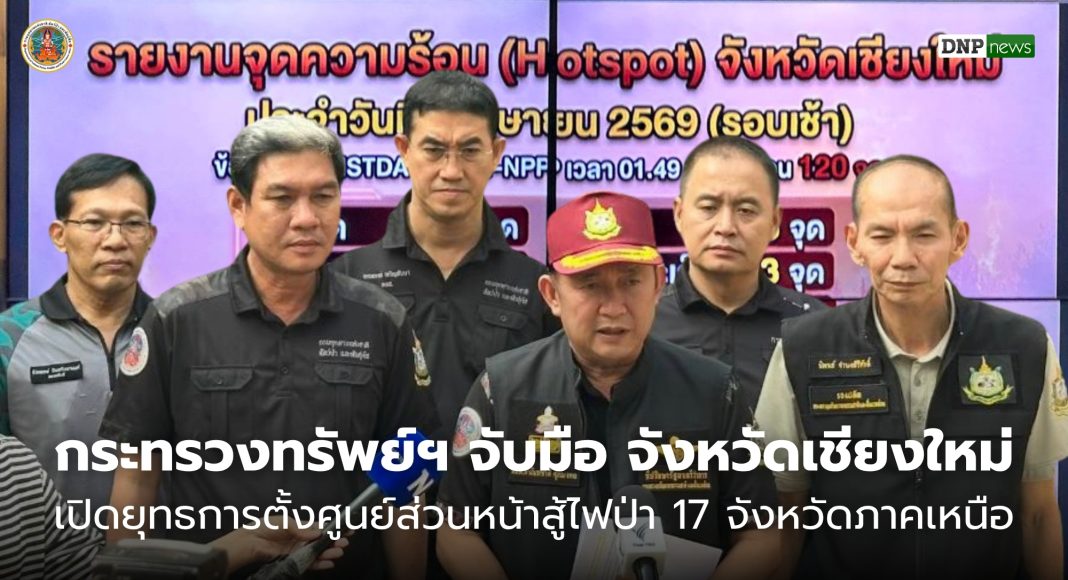 กระทรวงทรัพย์ฯ จับมือ จังหวัดเชียงใหม่ เปิดยุทธการตั้งศูนย์ส่วนหน้าสู้ไฟป่า 17 จังหวัดภาคเหนือ ตามนโยบายรัฐบาล มุ่งเป้าคืนอากาศสดใสให้ชาวภาคเหนือ