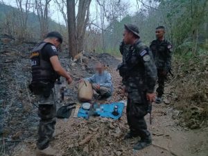 เมื่อเวลาประมาณ 18.30 น. ขณะเจ้าหน้าที่ชุดลาดตระเวนกำลังดักซุ่มเฝ้าระวังไฟป่า ได้ตรวจพบชาย 1 ราย มีพฤติกรรมล่าสัตว์ป่า จึงเข้าทำการจับกุมพร้อมตรวจยึดของกลางรวม 6 รายการ ประกอบด้วย อาวุธปืนลูกซองยาว จำนวน 1 กระบอก, ซากตะกวด (แลน) จำนวน 1 ตัว, เครื่องกระสุนปืนลูกซอง จำนวน 4 นัด, อุปกรณ์ส่องสว่าง (ไฟฉายคาดหัว) 1 ดวง, อาวุธมีด 1 เล่ม, รถจักรยานยนต์ ฮอนด้าเวฟ 100 สีดำ-แดง 1 คัน