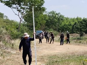 การลงพื้นที่ครั้งนี้ได้รับความร่วมมืออย่างดียิ่งจากท้องถิ่น ทั้งนางสาวญานินท์ พรมศร นายก อบต.ทุ่งมหาเจริญ และกลุ่มอาสาสมัครเฝ้าระวังช้างป่า “กลุ่มคนหลังเขา” โดยร่วมกันสำรวจรังวัดแนวเขตป่าเริ่มจากบริเวณบ้านสระหลวง ตำบลทุ่งมหาเจริญ ไปจนถึงสวนพฤกษศาสตร์วังน้ำเย็น รวมระยะทางประมาณ 7 กิโลเมตร เพื่อเตรียมความพร้อมขั้นสุดท้ายก่อนที่เครื่องจักรกลหนักจะเริ่มเข้าพื้นที่ปฏิบัติงานจริง