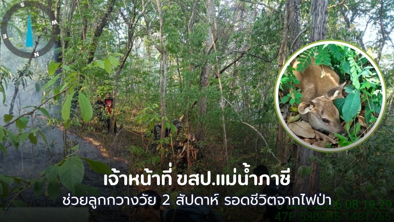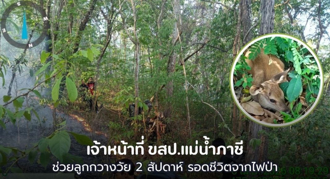 เจ้าหน้าที่เขตรักษาพันธุ์สัตว์ป่าแม่น้ำภาชี และสถานีควบคุมไฟป่าแม่น้ำภาชี ประสบความสำเร็จในการช่วยชีวิตลูกกวางอายุเพียง 2 สัปดาห์ ซึ่งติดอยู่กลางวงล้อมของไฟป่าในพื้นที่ลึก หลังปฏิบัติการดับไฟนานกว่า 1 ชั่วโมง