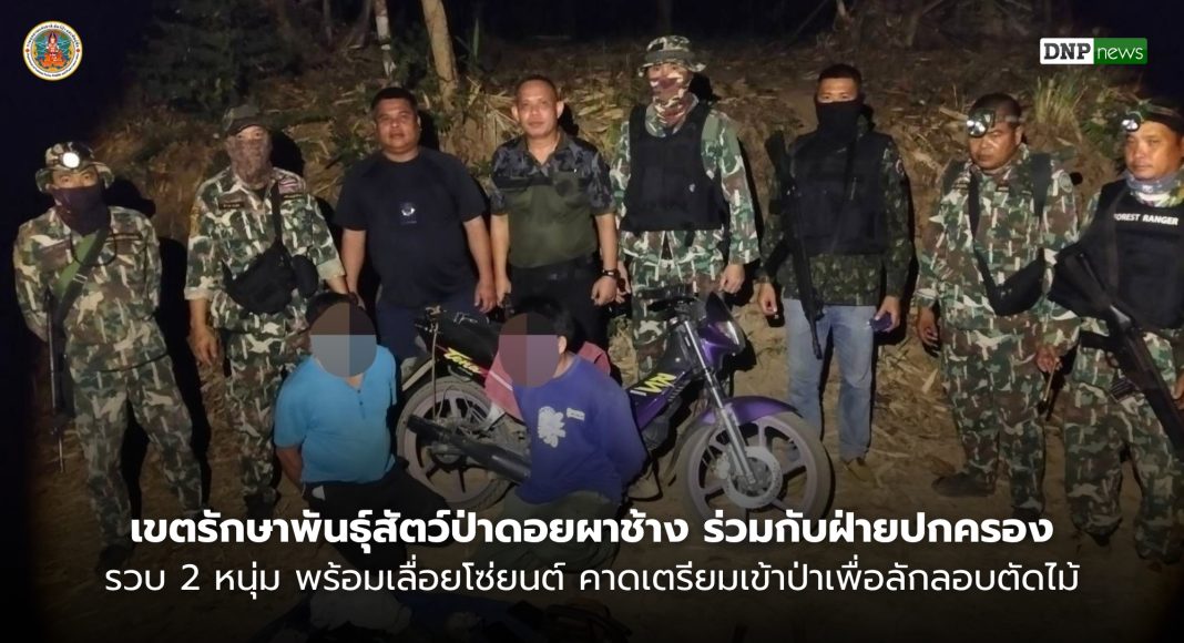 ผลการปฏิบัติงาน ตรวจพบการกระทำผิดตามกฎหมายตาม พ.ร.บ.สงวนและคุ้มคลองสัตว์ป่า พ.ศ.2562 และ พ.ร.บ.เลื่อยโซ่ยนต์ พ.ศ.2545 พร้อมผู้ต้องหา 2 ราย ได้แก่ นายวิจิตร อายุ 41 ปี และนายปัณณวัฒน์ อายุ 33 ปี ข้อกล่าวหา ฐานร่วมกันเข้าไปในเขตรักษาพันธุ์สัตว์ป่า โดยไม่ได้อนุญาต ตาม พ.ร.บ.สงวนพระคุ้มครองสัตว์ป่า พ.ศ.2562 และฐานร่วมกันมีเลื่อยโซ่ยนต์ไว้ในครอบครอง โดยมิได้รับอนุญาต ตาม พ.ร.บ.เลื่อยโซ่ยนต์ พ.ศ.2545 และยังเป็นการฝ่าฝืนตามคำสั่งเรื่อง ห้ามมิให้บุคคลใดบุคคลหนึ่ง เข้าไปทำกระทำการใดๆ ในเขตป่าสงวนแห่งชาติป่าแม่ยม และห้ามเข้าไปในพื้นที่เขตรักษาพันธุ์สัตว์ป่าดอยผาช้าง