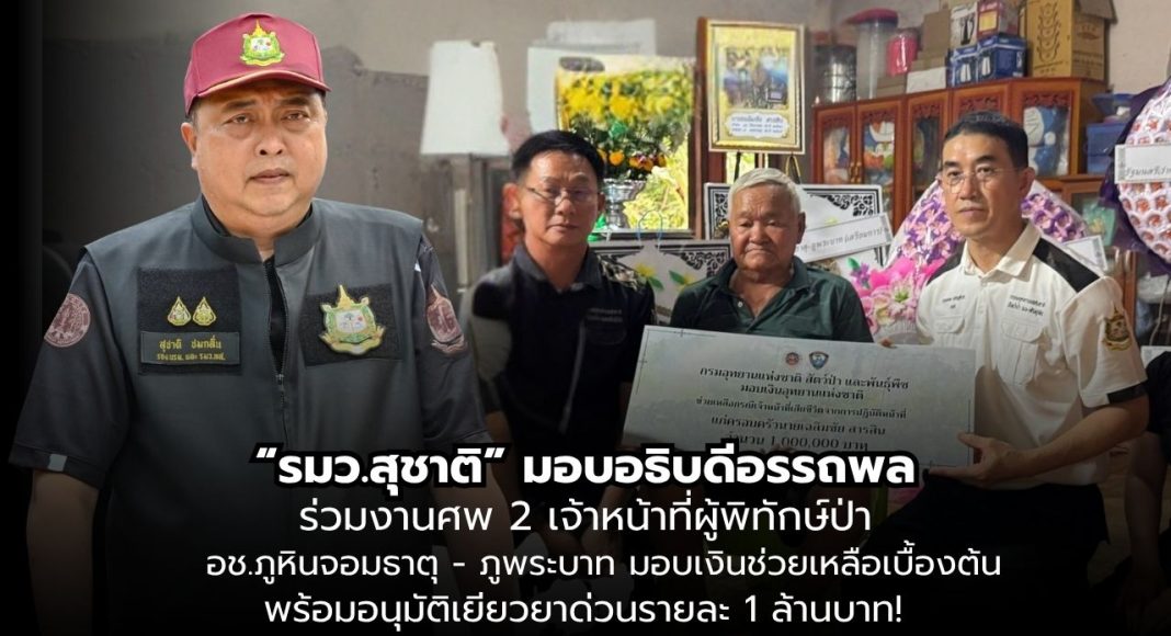9 เมษายน 2569 – นายสุชาติ ชมกลิ่น รัฐมนตรีว่าการกระทรวงทรัพยากรธรรมชาติและสิ่งแวดล้อม และ ดร.รวีวรรณ ภูริเดช ปลัดกระทรวงทรัพยากรธรรมชาติและสิ่งแวดล้อม มอบหมายให้นายอรรถพล เจริญชันษา อธิบดีกรมอุทยานแห่งชาติ สัตว์ป่า และพันธุ์พืช เป็นผู้แทนลงพื้นที่จังหวัดอุดรธานี เพื่อร่วมพิธีบำเพ็ญกุศลศพและให้กำลังใจครอบครัวเจ้าหน้าที่ผู้พิทักษ์ป่าที่เสียชีวิตจากอุบัติเหตุภายหลังปฏิบัติภารกิจดับไฟป่า