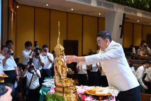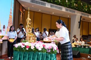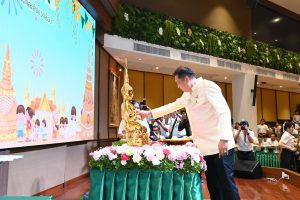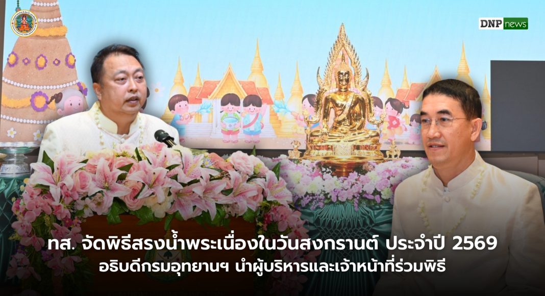 เมื่อวันที่ 10 เมษายน 2569 เวลา 09.30 น. นายสุชาติ ชมกลิ่น รัฐมนตรีว่าการกระทรวงทรัพยากรธรรมชาติและสิ่งแวดล้อม (รมว.ทส.) เป็นประธานในพิธีพิธีสรงน้ำพระเนื่องในวันสงกรานต์ โดยมี ดร.รวีวรรณ ภูริเดช ปลัดกระทรวงทรัพยากรธรรมชาติและสิ่งแวดล้อม กล่าวรายงานและขอพรเนื่องในวันสงกรานต์ ทั้งนี้ มีนายอรรถพล เจริญชันษา อธิบดีกรมอุทยานแห่งชาติ สัตว์ป่า และพันธุ์พืช ผู้บริหารระดับสูง ทส. ข้าราชการ และเจ้าหน้าที่ ร่วมสรงน้ำพระ รดน้ำขอพร เนื่องในวันสงกรานต์ ประจำปี 2569 เพื่อความเป็นสิริมงคลในโอกาสวันปีใหม่ของไทย เสริมสร้างความสุขความสามัคคีและสร้างขวัญกำลังใจแก่บุคลากร ณ ห้องประชุมศักดิ์สิทธิ์ ตรีเดช กระทรวงทรัพยากรธรรมชาติและสิ่งแวดล้อม และถ่ายทอดสัญญานผ่านระบบการประชุมทางไกล ไปยังส่วนราชการภายในสังกัด ทส. ทั่วประเทศ
