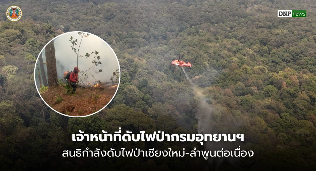 เจ้าหน้าที่ดับไฟป่ากรมอุทยานฯ สนธิกำลังดับไฟป่าเชียงใหม่-ลำพูนต่อเนื่อง พบ “หาของป่า-แกล้งจุด” ยังเป็นสาเหตุหลัก ทำพื้นที่เสียหายจำนวนมาก