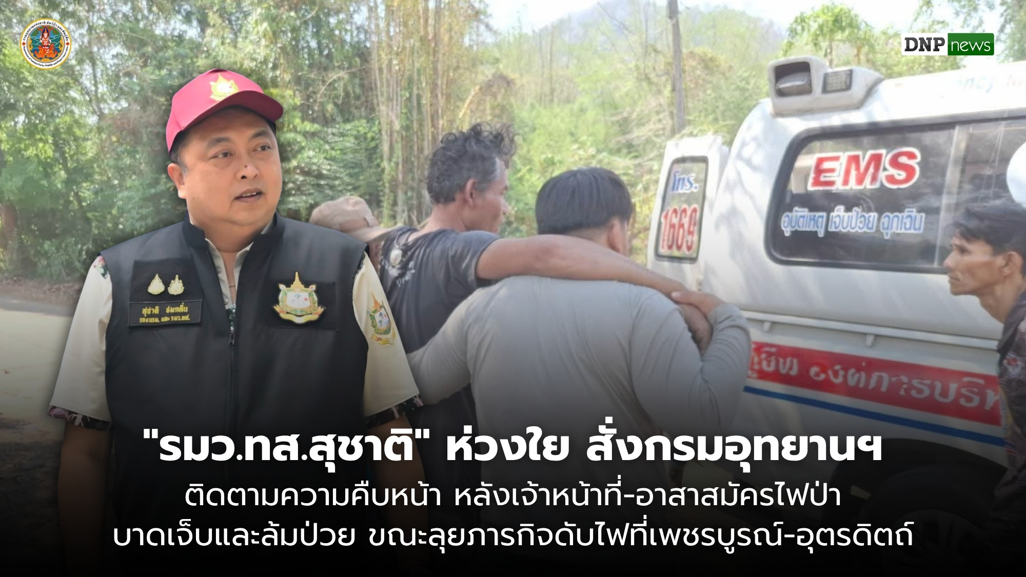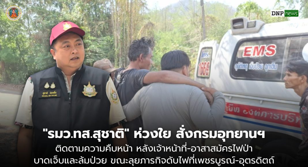 วันที่ 12 เมษายน 2569 นายอรรถพล เจริญชันษา อธิบดีกรมอุทยานแห่งชาติ สัตว์ป่า และพันธุ์พืช เปิดเผยว่า นายสุชาติ ชมกลิ่น รัฐมนตรีว่าการกระทรวงทรัพยากรธรรมชาติและสิ่งแวดล้อม (รมว.ทส.) มีความห่วงใยต่อสุขภาพและความปลอดภัยของเจ้าหน้าที่และอาสาสมัคร หลังได้รับรายงานเหตุการณ์บาดเจ็บและล้มป่วยกะทันหันขณะปฏิบัติหน้าที่สกัดกั้นไฟป่าในช่วงวันที่ 10-11 เมษายน ที่ผ่านมา