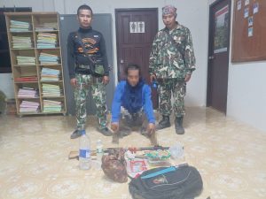เจ้าหน้าที่เขตรักษาพันธุ์สัตว์ป่าภูค้อ-ภูกระแต สนองนโยบาย รมว.ทส. และกรมอุทยานฯ ยกระดับลาดตระเวนเข้มช่วงสงกรานต์ รวบชายวัย 49 คาป่าห้วยกวางโตน หลังก่อเหตุจุดไฟเผาป่าหวังล่อสัตว์ออกมาให้ยิง ตะลึงพบของกลางครบชุด ทั้งปืน-กระสุน-เสบียง ยันอุปกรณ์เสพยาบ้า ส่งดำเนินคดีหนัก 4 ข้อหา