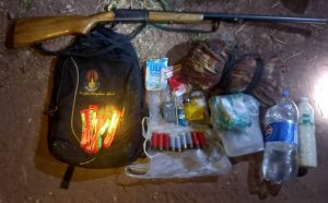 ทราบชื่อภายหลังคือ นายสุขสันต์ (สงวนนามสกุล) อายุ 49 ปี จากการตรวจค้นพบของกลาง ประกอบด้วย อาวุธปืนลูกซองยาว 1 กระบอก, เครื่องกระสุนปืน 9 นัด, อุปกรณ์เสพยาบ้า 1 ชุด, มีดปลายแหลม, ขวาน และอุปกรณ์เดินป่า (เปลนอน, ข้าวสาร, เสบียงอาหารสำเร็จรูป)