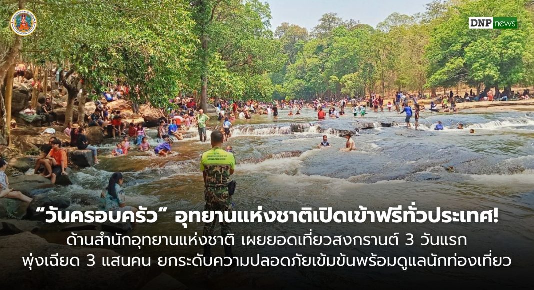 สำหรับวันนี้ (14 เมษายน) ซึ่งตรงกับ “วันครอบครัว” กรมอุทยานแห่งชาติ สัตว์ป่า และพันธุ์พืช ได้มอบของขวัญพิเศษด้วยการเปิดให้ชาวไทยเข้าฟรีในอุทยานแห่งชาติ วนอุทยาน เขตรักษาพันธุ์สัตว์ป่า เขตห้ามล่าสัตว์ป่า สวนพฤกษศาสตร์ และสวนรุกขชาติทั่วประเทศ เพื่อส่งเสริมให้สถาบันครอบครัวได้ทำกิจกรรมร่วมกันและสัมผัสความงามของทรัพยากรธรรมชาติอย่างใกล้ชิด ซึ่งคาดการณ์ว่าบรรยากาศการท่องเที่ยวในวันนี้จะคึกคักเป็นพิเศษ โดยทางสำนักอุทยานแห่งชาติได้เตรียมความพร้อมรองรับนักท่องเที่ยวกลุ่มครอบครัวอย่างเต็มที่ ทั้งในด้านสถานที่ การจัดการขยะภายใต้โครงการขยะคืนถิ่น และมาตรการความปลอดภัยที่เข้มงวดมากขึ้น
