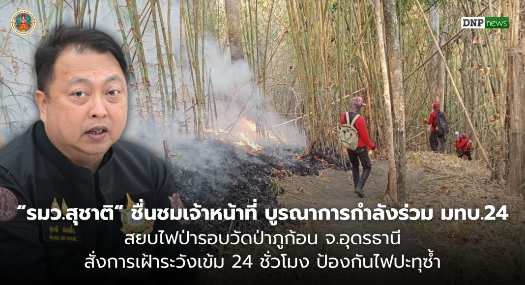 นายสุชาติ ชมกลิ่น รมว.ทส. ได้กล่าวชื่นชมและขอบคุณเจ้าหน้าที่ทุกคน รวมถึงท่านผู้บัญชาการมณฑลทหารบกที่ 24 ที่ให้การสนับสนุนกำลังพลอย่างเต็มที่ การทำงานร่วมกันเช่นนี้คือหัวใจสำคัญในการปกป้องทรัพยากรป่าไม้และศาสนสถานสำคัญของชาติ แม้จะเป็นช่วงวันหยุดเทศกาล แต่สปิริตของเจ้าหน้าที่ทุกคนที่ยอมเสียสละเพื่อส่วนรวมเป็นสิ่งที่น่ายกย่องอย่างยิ่ง พร้อมได้กำชับให้อธิบดีกรมอุทยานฯ ติดตามสถานการณ์อย่างใกล้ชิด และดูแลสวัสดิภาพของเจ้าหน้าที่ผู้ปฏิบัติงานทุกคนให้ดีที่สุด.