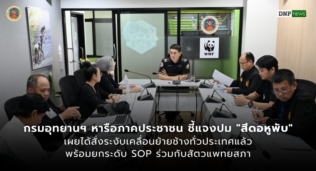วันที่ 16 เมษายน 2569 เวลา 10.00 น. ณ ศูนย์ช่วยเหลือประชาชนที่ได้รับผลกระทบจากสัตว์ป่า ชั้น 12 อาคารสืบ นาคะเสถียร กรมอุทยานแห่งชาติ สัตว์ป่า และพันธุ์พืช นายอรรถพล เจริญชันษา อธิบดีกรมอุทยานแห่งชาติฯ พร้อมด้วย นายสุขี บุญสร้าง ผู้อำนวยการสำนักอนุรักษ์สัตว์ป่า ได้ประชุมหารือพร้อมชี้แจงข้อเท็จจริงต่อกลุ่มตัวแทนภาคประชาชน นำโดย คุณเดือนเต็ม สาลิตุล นักแสดงอาวุโส และอาจารย์กิติคุณ พลวัน ประธานชมรมจิตอาสารักษ์สัตว์ เพื่อสร้างความเข้าใจในกรณีการเสียชีวิตของช้างป่า “สีดอหูพับ” ระหว่างการเคลื่อนย้ายในพื้นที่จังหวัดขอนแก่น ซึ่งเป็นประเด็นที่ภาคประชาชนให้ความห่วงใย โดยเฉพาะขั้นตอนการคัดเลือกตัวช้างและการปฏิบัติงานของเจ้าหน้าที่