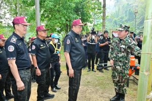 จากนั้น รมว.ทส. ได้พบปะตัวแทนเครือข่ายชุมชนเพื่อขอบคุณภาคประชาชนที่มีส่วนร่วมในการเฝ้าระวังอย่างเข้มแข็ง ก่อนตรวจเยี่ยมและให้กำลังใจเจ้าหน้าที่ผู้ปฏิบัติงานด่านหน้า พร้อมมอบอาหารแห้งและสิ่งของอุปโภคบริโภคที่จำเป็นเพื่อสร้างขวัญกำลังใจแก่ผู้เสียสละทำหน้าที่ปกป้องทรัพยากรธรรมชาติอย่างเต็มกำลังความสามารถ โดยได้เน้นย้ำว่าเจ้าหน้าที่ทุกคนคือกำลังสำคัญในการดูแลและปกป้องทรัพยากร ความปลอดภัยและสวัสดิการของทุกคนเป็นสิ่งที่ให้ความสำคัญเป็นอันดับหนึ่ง และพร้อมที่จะสนับสนุนการทำงานของเจ้าหน้าที่ทุกคนอย่างเต็มที่เพื่อให้ภารกิจปกป้องป่าครั้งนี้สำเร็จไปได้ด้วยดี.