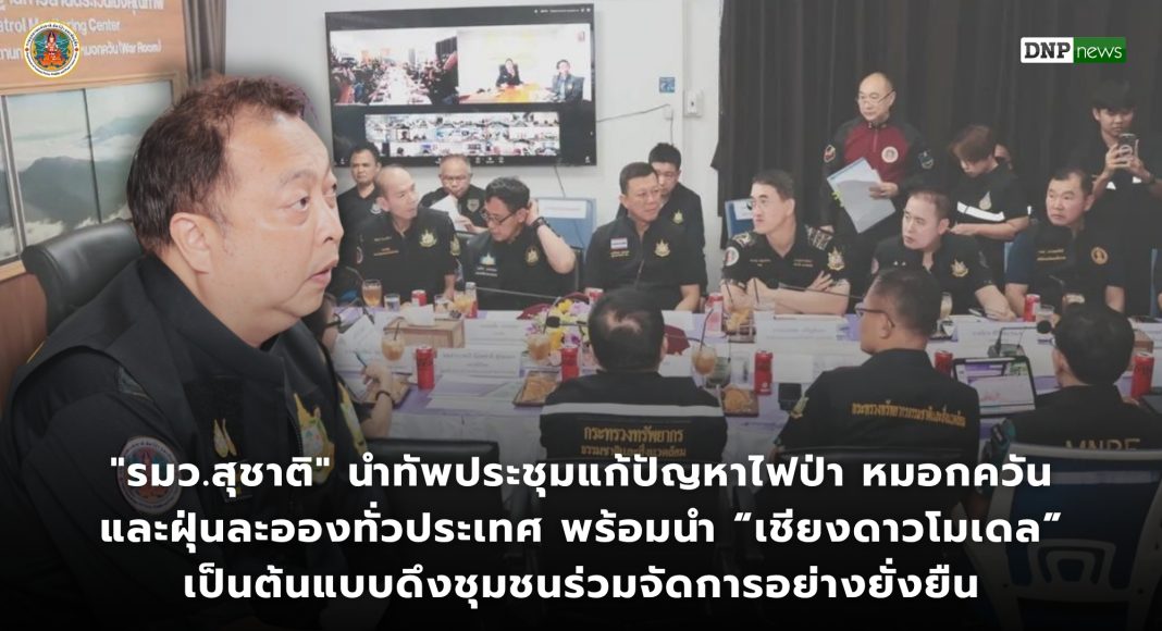 เมื่อวันที่ 18 เมษายน 2569 เวลา 14.00 น. นายสุชาติ ชมกลิ่น รัฐมนตรีว่าการกระทรวงทรัพยากรธรรมชาติและสิ่งแวดล้อม (รมว.ทส.) เป็นประธานการประชุมติดตามสถานการณ์และมอบแนวทางแก้ไขปัญหาไฟป่า หมอกควัน และฝุ่นละออง ณ ห้องประชุมอุทยานแห่งชาติศรีลานนา จ.เชียงใหม่