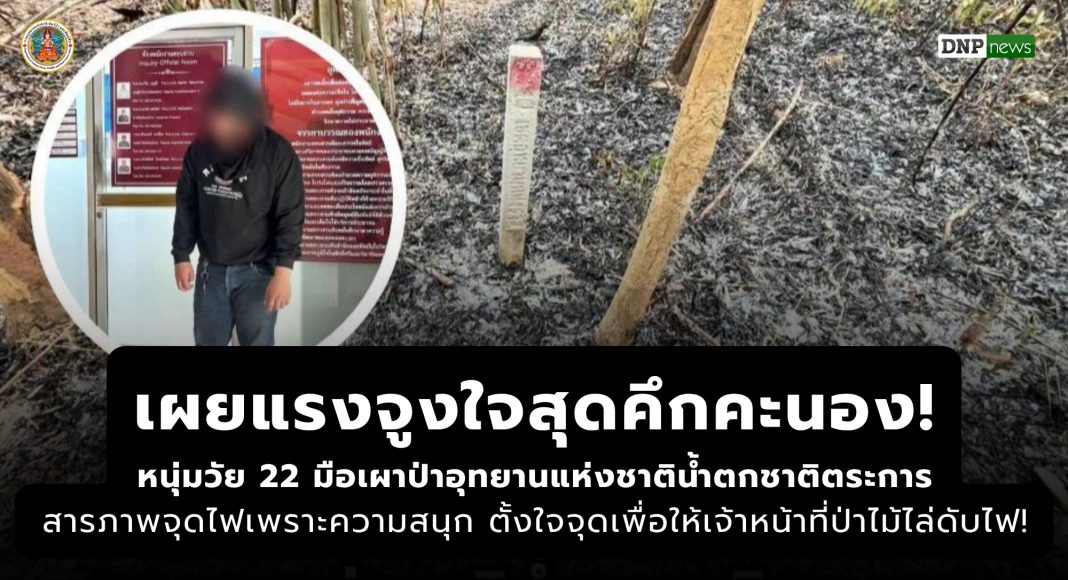 จากกรณีการจับกุมชายวัย 22 ปี ผู้ต้องหาลอบเผาป่าในเขตอุทยานแห่งชาติน้ำตกชาติตระการ บริเวณแนวเขตป่าแก่งหาดอ้อย ต.ท่าสะแก อ.ชาติตระการ จ.พิษณุโลก เมื่อวันที่ 18 เมษายน 2569 ซึ่งทำให้หลายฝ่ายต่างตั้งข้อสงสัยถึงแรงจูงใจในการกระทำความผิดในครั้งนี้